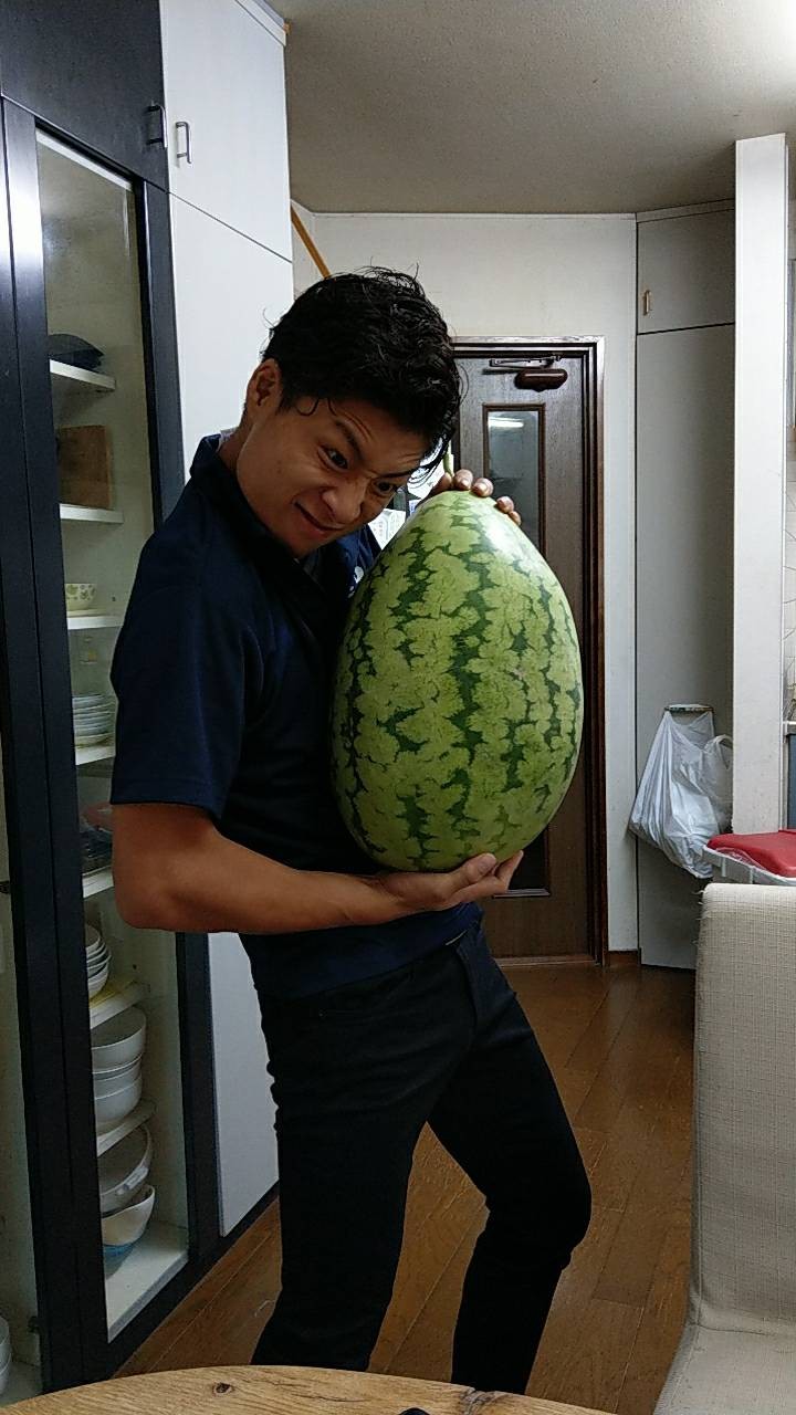 時期が遅れた.、 ポスト 2018年9月10日 こんにちは、武内です。 僕の父親側のお爺さんの畑で色々野菜を育てているのですが、先日父親が「スイカ出来たぞー」って言いながら帰ってきたわけですがそのスイカがなんと馬鹿でかかったのです。 どうですか!この大きさ!でかすぎてびっくり仰天でした( ・∇・) まだなかを見てませんが予想としてはつまってなさそう.、 担当:武内