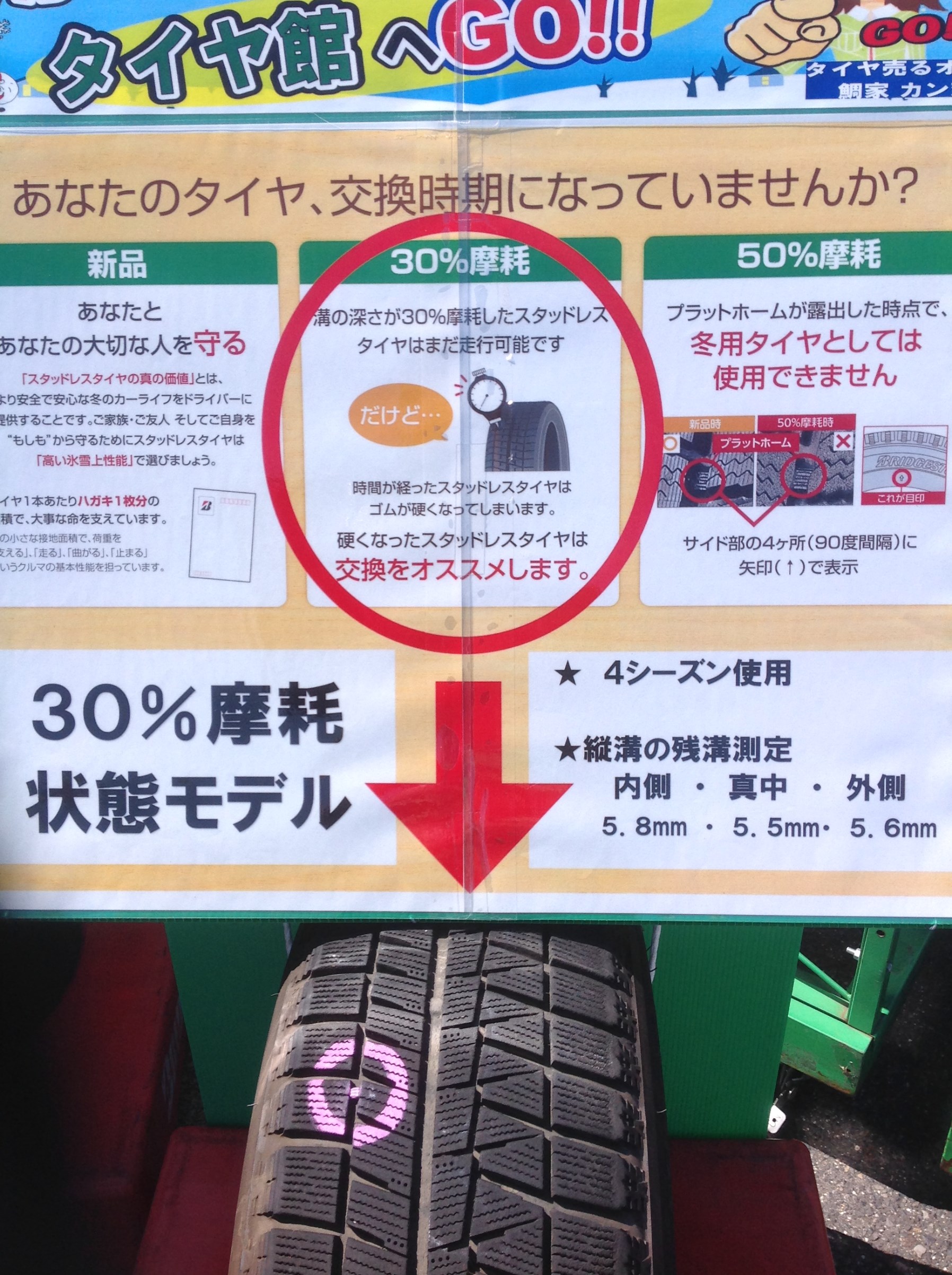 まだまだ暑いですが、雪が降ってから慌てて冬タイヤを出したら、溝が無くて使えない!