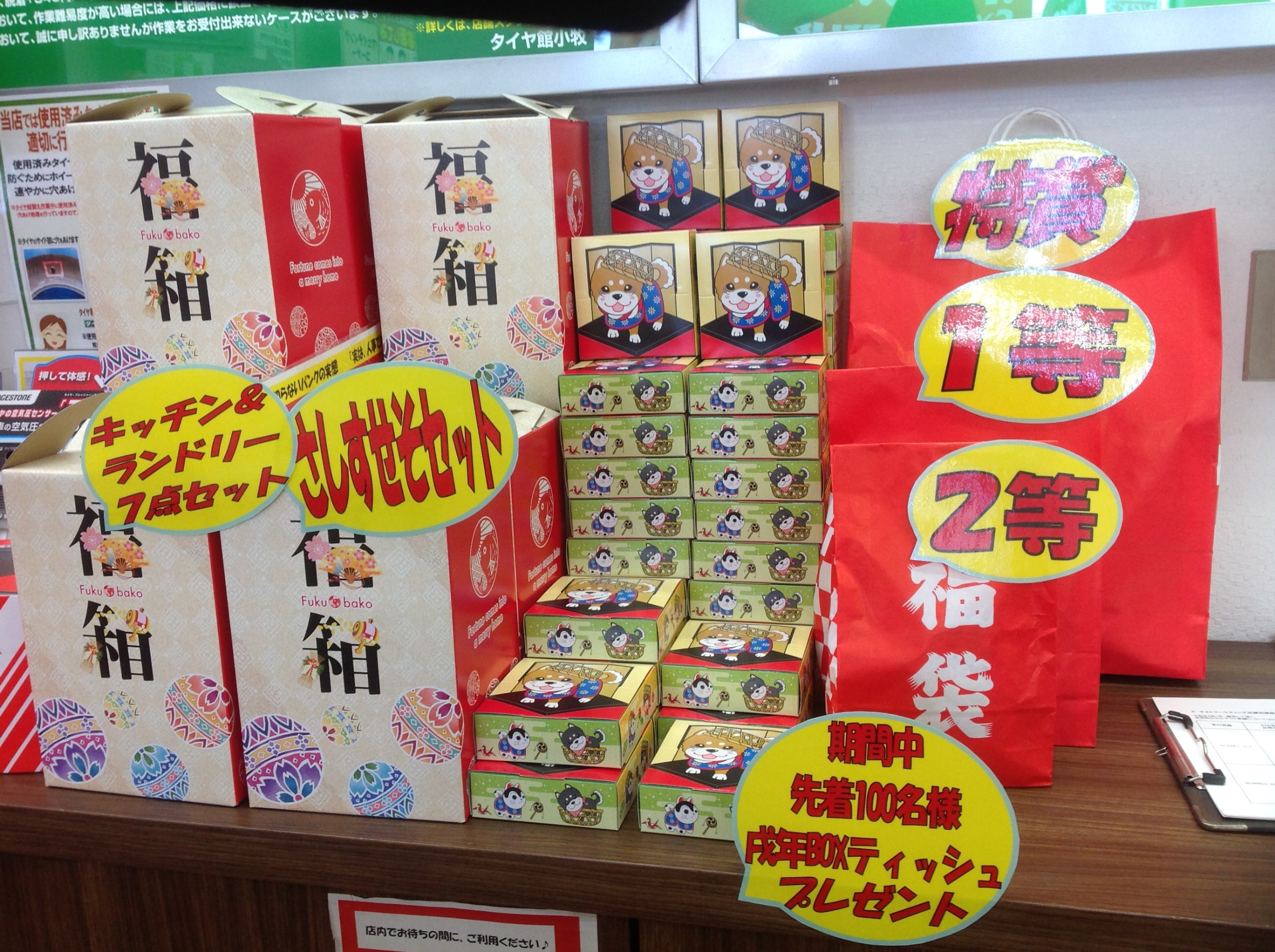 初売りプレゼント♪ ポスト 2018年1月6日 お正月気分も少しずつ抜けて、お仕事スタートされてる方も多いかと 思いますが、 小牧店では 初売りセール 1/8(祝)まで実施中です!(あと2日。。) お買い得にお買いものが出来るのはモチロン、 ご来店の方には戌年BOXティッシュ&くじ引きで福袋【お菓子】プレゼント♪ タイヤ4本ご購入で、選べる福箱も・・・ 数に限りがありますので、お早めにご来店下さい! 担当:馬場