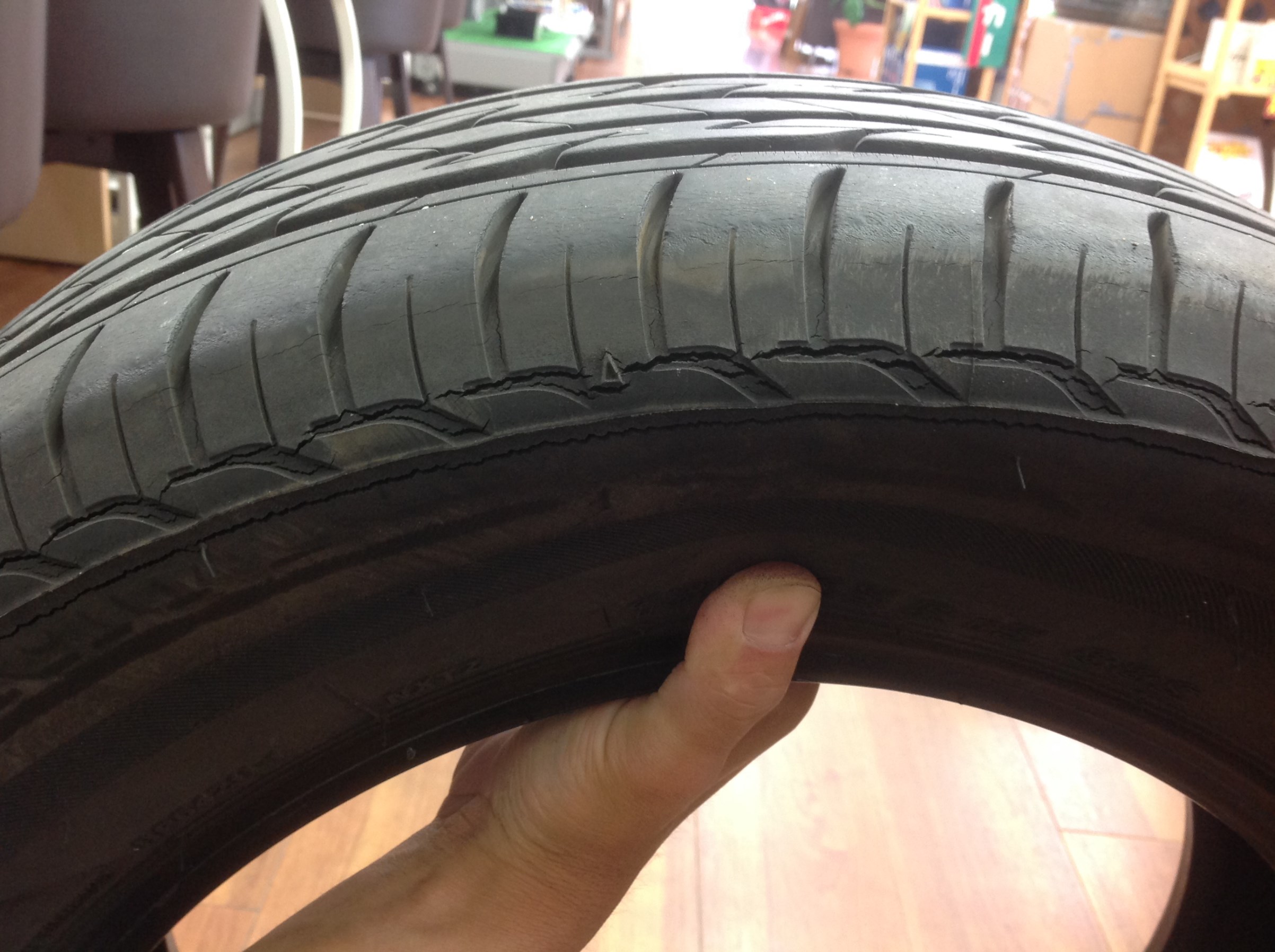 実際タイヤをはずしてみてみるとヒビが深く入っており、亀裂に近い状態に、、、、