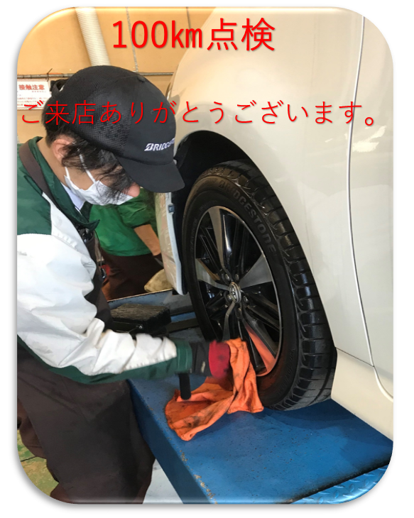 先日タイヤをお買い上げいただき、100㎞点検でご来店いただき誠にありがとうございます。