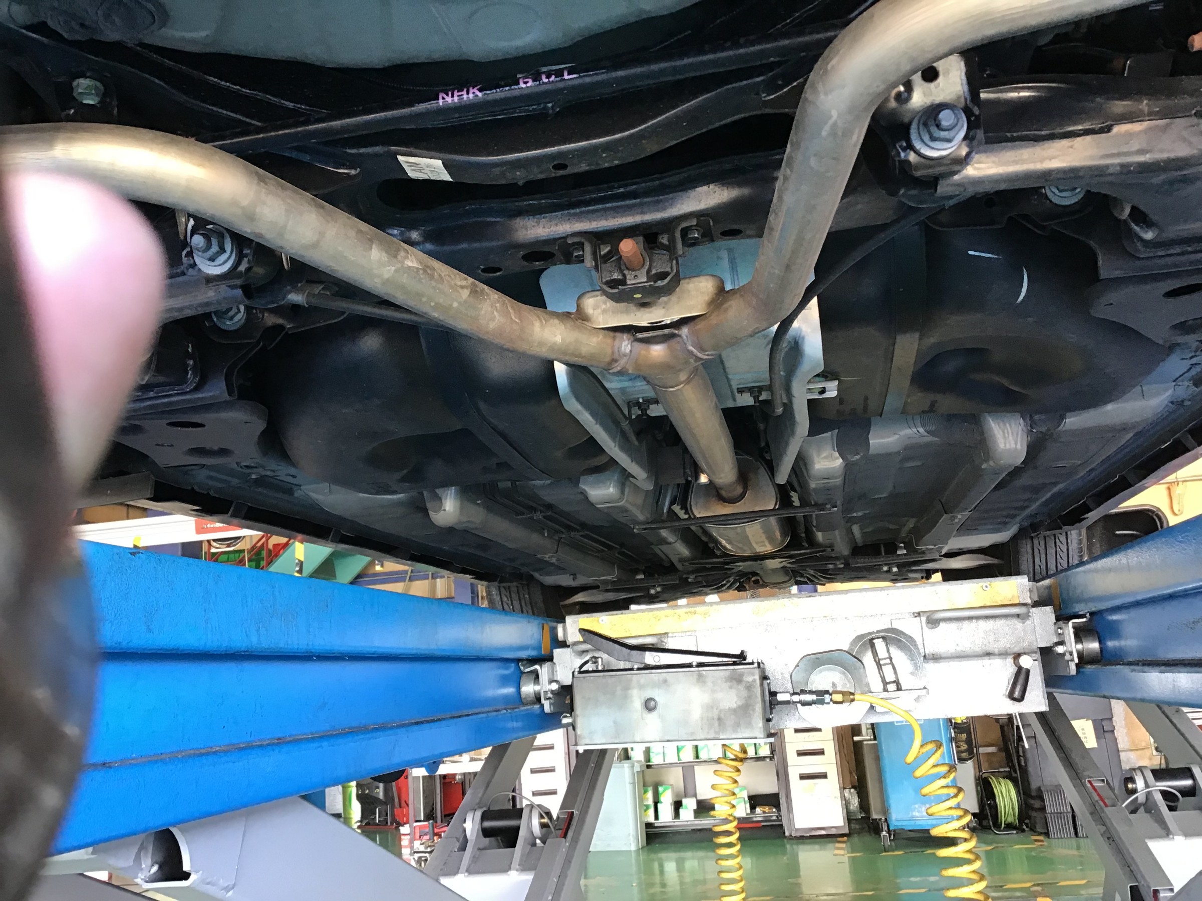 錆の浸食がひどくなるとマフラーハンガーからの脱落や排気もれ等が発生してしまうのです。(注意)