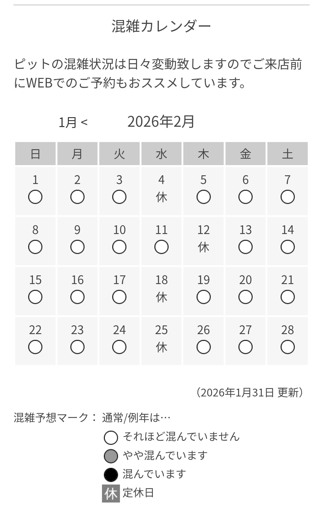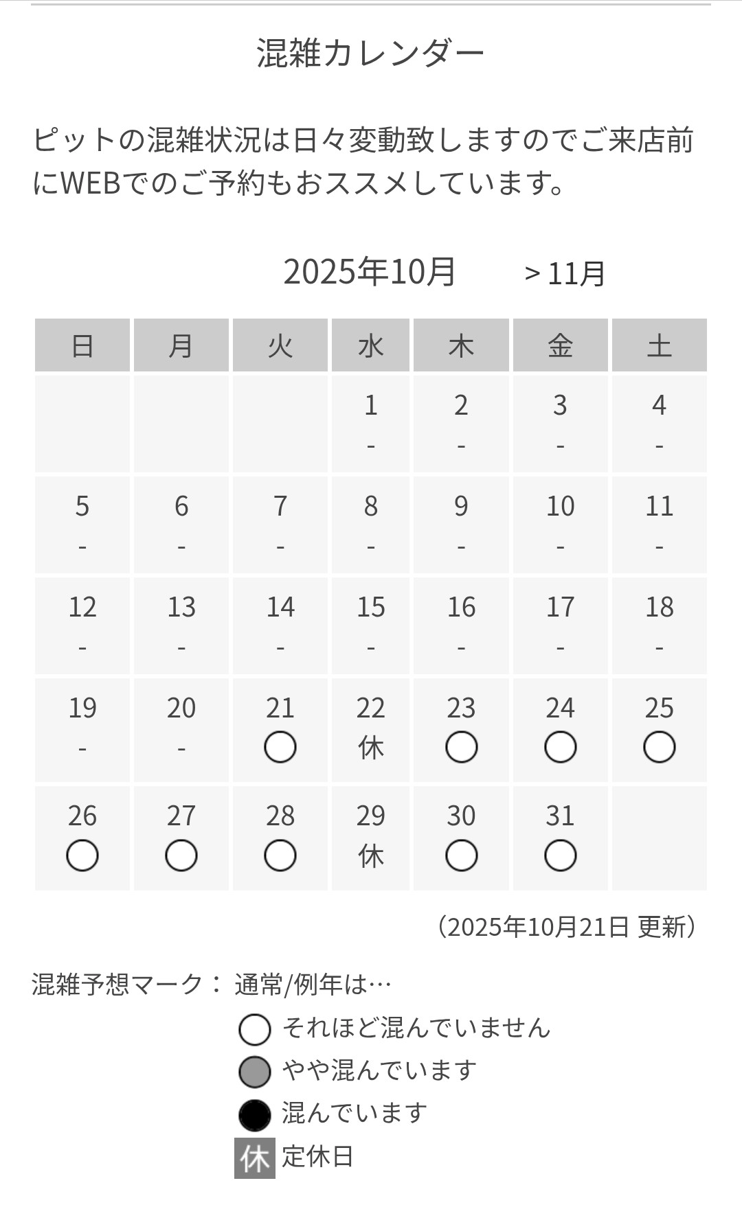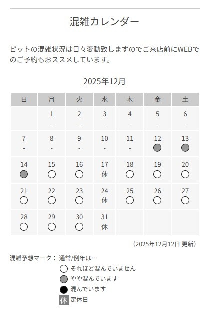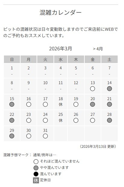 ピットの混雑状況は日々変動致しますのでご来店前にWEBでのご予約もおススメしています。