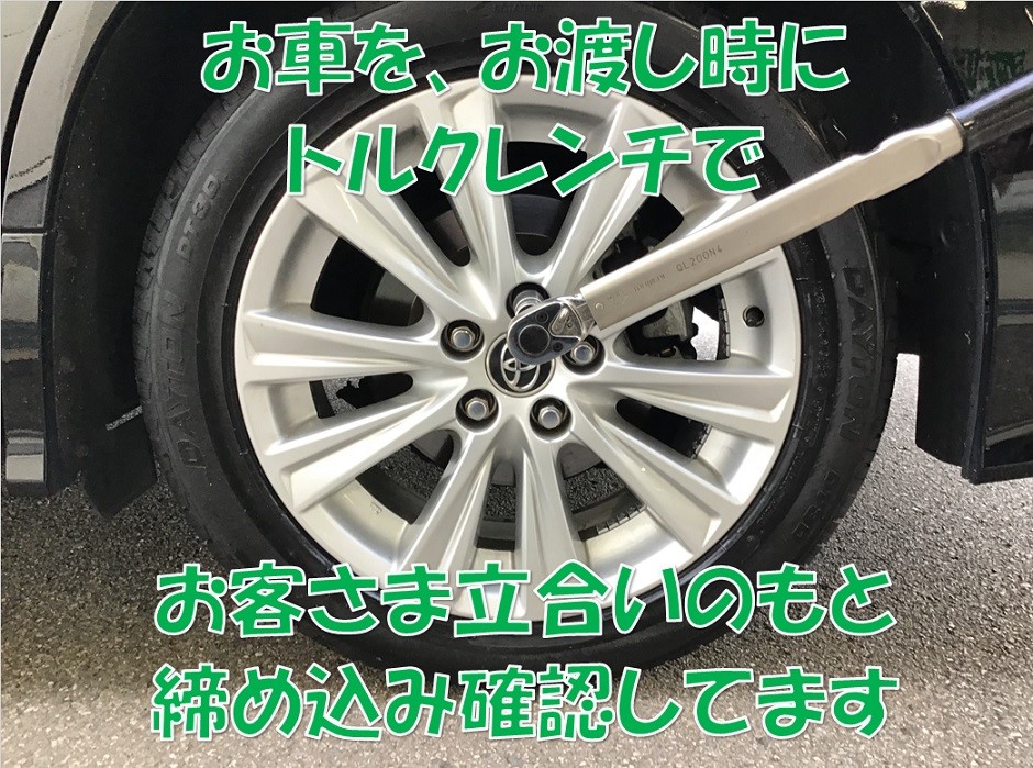 ☆トヨタ ヴェルファイア 夏タイヤ デイトンDT30 新品交換 ポスト 2020年8月23日 加賀市、能美市、小松市のみなさま お世話になっております! タイヤ館コマツです♪ 本日、ご紹介の作業は トヨタ ヴェルファイア 夏タイヤ新品交換 初めて当店をご来店頂いた お客さまより、ご相談頂けました。 予算抑えめのタイヤを探していました。 他の量販店カーショップさんにも 見てまわってました。 ウェブ検索で見つけた タイヤ館さんが わかりやすい納得説明と 丁寧な対応だったので こちらでお願いすることにしました♪ とのことで ご相談頂けました♪ ありがたきお言葉ありがとうございます 今まで使ってきたタイヤの状態 使用経過期間が4シーズン 装着使用距離が40,000kmぐらい 主に、毎日の通勤や買い物や お子さんの送り迎えで お車を使われており 休日はたまに ご家族で遠出されてるそうです。 月平均走行距離1300kmぐらいで かなりたくさん距離を走行される 使用環境です。 家計に優しい お手頃予算なタイヤがいいです。 でも 子どもの送り迎えもするので しっかりした安心できる タイヤが希望なんです♪ とのことで 今回選ばれました商品はコチラ デイトン DT30 235/50R18 ブリヂストンの主力商品 レグノ、プレイズ、エコピアシリーズの 下位モデル ネクストリーより お手頃価格なのが魅力のモデル ★ブリヂストンのタイヤは履きたいけど 予算が… ★予算重視だけどアジアンメーカーだと 心配… ★近所をチョイ乗りするだけなので ハイスペックは求めない… 以上のような お客さまからご好評頂いております。 それでは作業開始♪ 組替作業の詳細はコチラ お次は タイヤ バランス作業 タイヤバランス作業の詳細はこちら 車輌への取付は センターフィット作業にて 装着いたしました。 センターフィットとは? ブリヂストン系列店舗 (タイヤ館、コクピット)で施工できる タイヤを車軸の ど真ん中に取付できる オリジナル作業なんです♪ 昔のタイヤショップ職人さんが 【芯出し】と呼んでいた作業。 バランス作業で解決できない 回転振動が この作業で解決する事が多いんです 高速運転で発生する 細かい振動でお悩みのみなさま ぜひ、気軽にご相談くださいませ♪ 作業完了後 お車をお渡しする際に お客さま立会のもと ナット、ボルト締め込みを確認頂いてます 購入後も さらなる安心を提供いたします♪ タイヤ館のこだわりアフターケア その① 100km点検 タイヤ館のこだわりアフターケア その② パンク補償サービス パンク補償サービス詳細はコチラ 4本購入のお客さまが 選べる有料補償サービスです。 さらなる安心をご提供できちゃいます。 このたびのお買い上げ 誠にありがとうございました! ただいま スタッドレスタイヤのWebアンケートに 答えるだけで応募できる 冬の大抽選会を開催中です♪ Webアンケートはコチラから この機会にぜひ、ご応募くださいませ! タイヤ館コマツ店では お電話、もしくはメールでの 【相談、商談、作業予約】 受付サービスを実施しております。 タイヤ購入/見積もり相談される場合は 【事前準備】しておくと スムーズに気持ちよく相談できちゃいます♪ タイヤ見積もり/相談【事前準備】の詳細はコチラ お電話でご相談/ご依頼はコチラから TEL 0761―22―7088 メールでご相談/ご依頼はコチラから メールお問合せフォーム お気軽に、お問合わせください♪ おしまい カテゴリ:タイヤ関連 タイヤ関連 担当:いむら