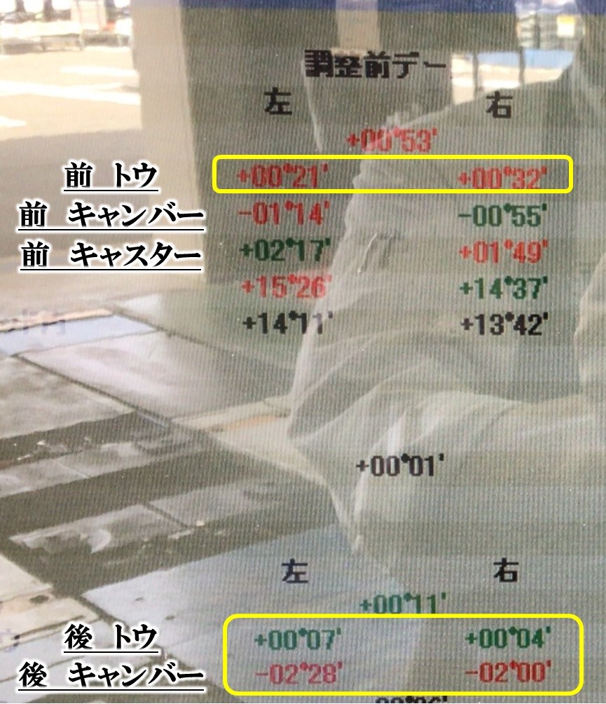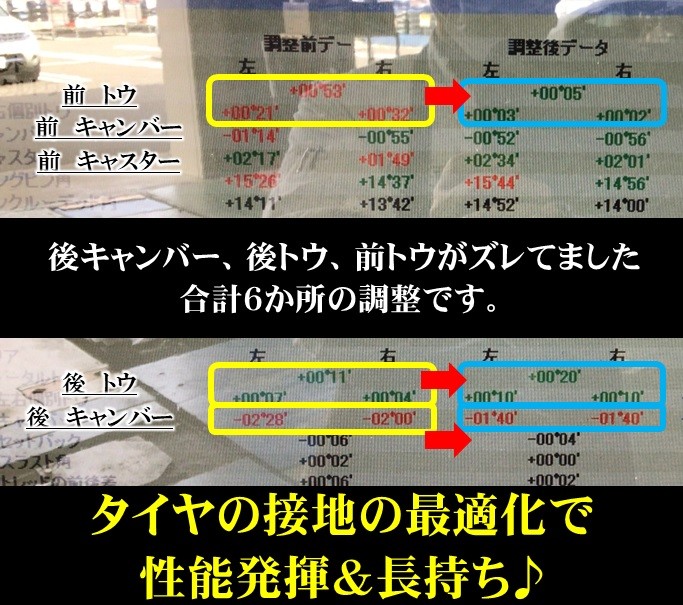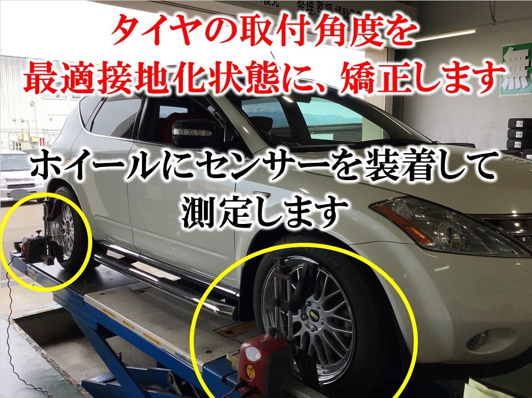 ★ムラーノ CBA-PZ50 アライメント施工 ポスト 2022年5月27日 加賀市、能美市、小松市のみなさま お世話になっております! タイヤ館コマツです♪ 本日、ご紹介の作業は 日産 ムラーノ アライメント測定/調整 以前にも、当店をご利用頂いてた お客様より、ご相談です。 足回りの部品を リフレッシュ交換したので 最終調整仕上げのため アライメント作業を 施工させていただくこと となりました。 まずは 現状の状態を把握するために 試走行します。 アライメント専用リフトレーンに 入庫 センサーをホイールに装着します。 測定結果 前トウが イン方向に大きくズレてました。 このまま、放っておけば タイヤの走行抵抗が 内股にどんどん強くなり いままでより もっと くっきりと 外減りしてしまうところでした。 では 早速、調整します 調整結果 今回のような 6か所調整作業で 作業時間は 60~90分で完了いたします。 この度の お買い求め 誠にありがとうございます! タイヤ館コマツ店では お電話、Web、メールでの 【相談、商談、作業予約】 受付サービスを実施しております。 お電話でご相談/作業予約はコチラから TEL 0761―22―7088 Webで作業予約できます♪ Webでの、作業予約はコチラから Webで相談できます♪ Webでの、ご相談はコチラから タイヤ購入/見積もり相談される場合は 相談前の【事前準備】をしておくと スムーズに気持ちよく相談できちゃいます♪ タイヤ見積もり/相談【事前準備】の詳細はコチラ お気軽に、お問合せくださいませ♪ おしまい カテゴリ:タイヤ関連 担当:いむら