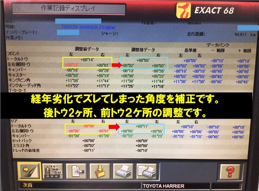 トヨタ ハリアー DBA-ASU65W アライメント施工