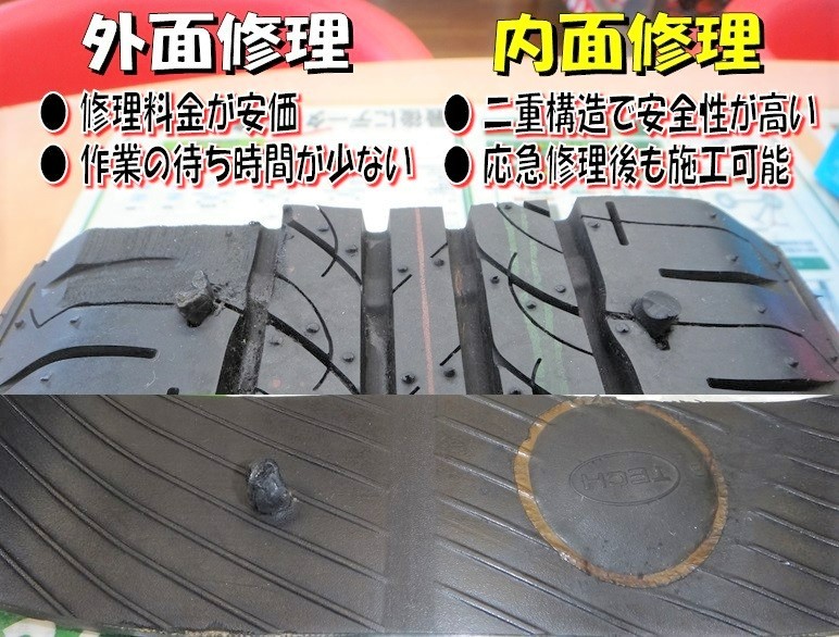 タイヤ館2つのパンク修理 「外面修理」と「内面修理」の話