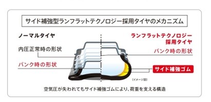 サイド補強型のランフラットタイヤ。