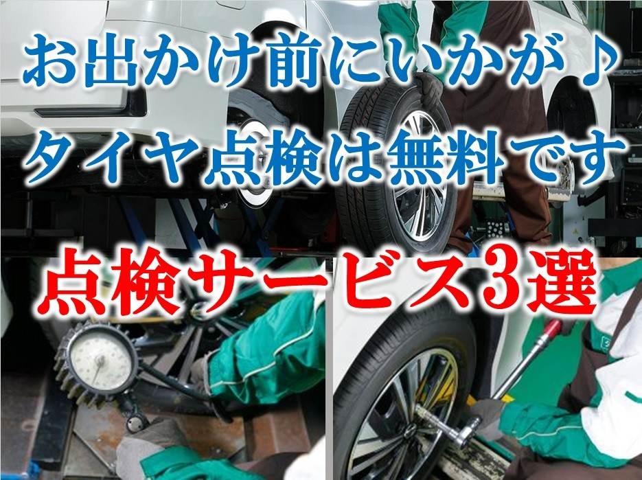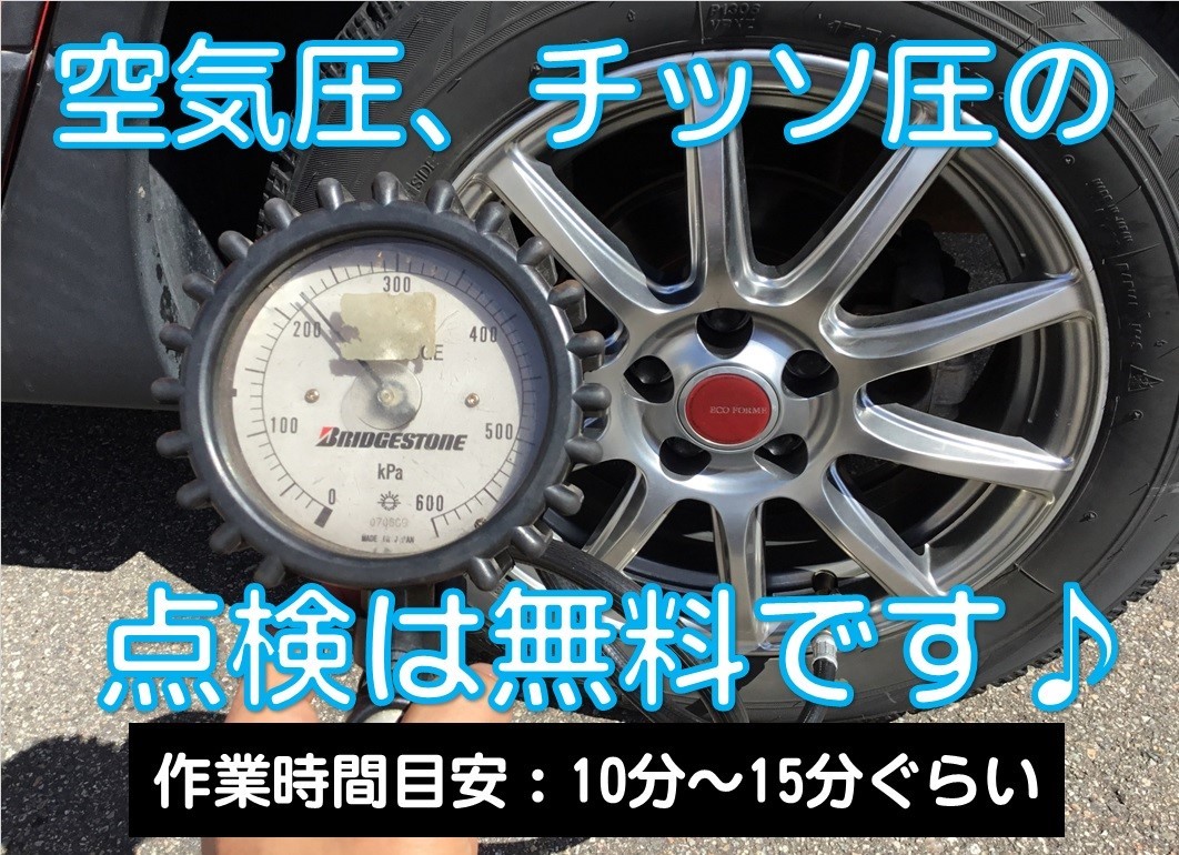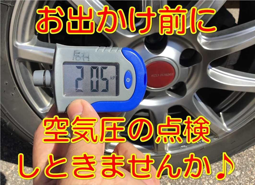 行楽ドライブの準備のお手伝いします♪ 空気圧補充、ナット増し締め点検、状態診断は無料にて対応させて頂いてます♪