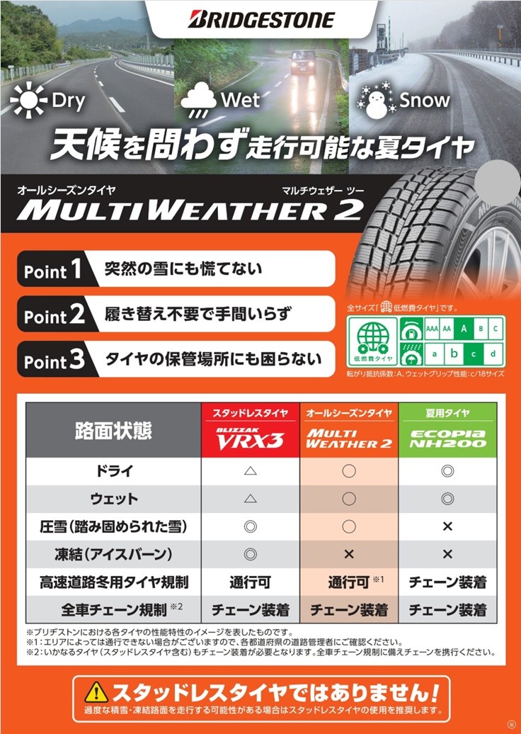 タイヤ館の主な取扱タイヤメーカーはブリヂストンです。