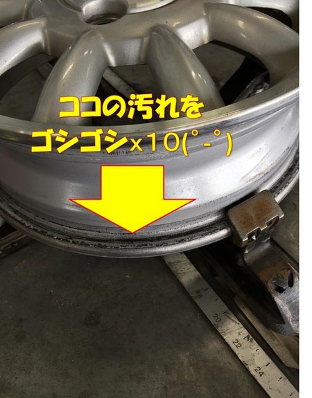 この【カス】なるものをキレイにしないままタイヤを組んでしまいますと、