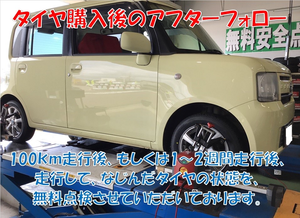 ダイハツ ムーヴコンテ 夏タイヤ エコピアNH100C 新品交換 アライメント ポスト 2020年5月10日 加賀市、能美市、小松市のみなさま、 お世話になっております♪ タイヤコマツです♪ 本日、ご紹介の作業は ダイハツ ムーヴコンテ 夏タイヤ 新品交換 アライメント施工 当店をいつもご利用頂いてる お客さまより、ご相談頂けました。 夏タイヤが減ってきて、 雨の日の走行や、強めのブレーキの時に、 滑るようになってきたので、 不安になってきちゃった。 気軽に安心に頼めちゃう、 タイヤ館に、お願いに来ました♪ とのことで、 ご相談頂けました♪ (ありがたきお言葉ありがとうございます!) 今まで使ってきたタイヤの状態。 使用経過期間が4年、 使用経過距離が33,000km、 生活メインの足になるお車であり、 毎日の通勤や買い物、 休日はたまに遠出されている 月平均走行距離が980kmで、 しっかり距離を走行される使用環境です。 予算控えめ、 でも、しっかりした安心できる性能の タイヤが希望なんです♪ とのことで、 今回選ばれました商品はコチラ。 ネクストリー 155/65R14 ブリヂストンの主力商品 レグノ、プレイズ、エコピアシリーズの 下位モデルですが、 基本性能を備えていて、 お手頃価格なのが魅力のモデル。 ★ブリヂストンのタイヤが履きたいけど、予算が… ★予算重視だけど、アジアメーカーだと心配… ★近所をチョイ乗りするだけなので、ハイスペックは求めない… だけど、 安全と安心のために、 しっかりしたタイヤがほしい。 こんな感じのお客様に、ご好評頂いてます。 それでは、組み替え作業にはいります。 組替作業の詳細はコチラ タイヤバランス作業の詳細はこちら 取付はセンターフィット作業にて 装着いたします。 センターフィットとは? ブリヂストン系列店舗 (タイヤ館、コクピット)で施工できる タイヤを車軸の、ど真ん中に取付できる オリジナル作業なんです♪ 昔のタイヤショップ職人さんが【芯出し】 と呼んでいた作業。 バランス作業で解決できない回転振動が この作業で解決する事が多いんです 高速運転中の 細かい振動でお悩みのみなさま ぜひ、気軽にご相談くださいませ♪ 仕上げにアライメント作業です。 経年により発生するズレを 定期検診的に確認します。 アライメントの詳細はコチラ こんな感じに タイヤの取付角度がまる解りになります。 アライメント作業は、 タイヤを買い替えされる時や 足廻り部品を交換した際に 施工頂くのが、ベストなタイミングです タイヤ館は アライメント作業も得意なんです♪ お気軽にご相談くださいませ♪ 作業完了後にお車を、お渡しする際に お客さま立会のもと ナット、ボルト締め込み確認頂いてます。 購入後もさらなる安心を提供するための タイヤ館こだわりアフターケアの 100km点検 このたびのお買い上げ 誠にありがとうございました! タイヤ館コマツ店では、 お電話、もしくはメールでの 【相談、商談、作業予約】 受付サービスを実施しております。 タイヤ購入/見積もり相談される場合は、 【事前準備】しておくと、 スムーズに気持ちよく相談できちゃいます♪ タイヤ見積もり/相談【事前準備】の詳細はコチラ お電話での、ご相談/ご依頼はコチラから TEL 0761―22―7088 メールでの、ご相談/ご依頼はコチラから メールお問合せフォーム お気軽にお問合わせくださいませ♪ おしまい カテゴリ:タイヤ関連 タイヤ関連 タイヤ関連 担当:いむら