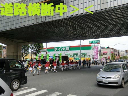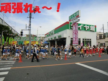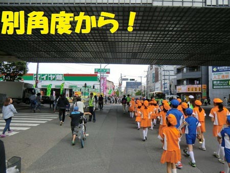 いろんな小学校の学生が、楽器等を持ち、演奏をしながら行進をしていました。