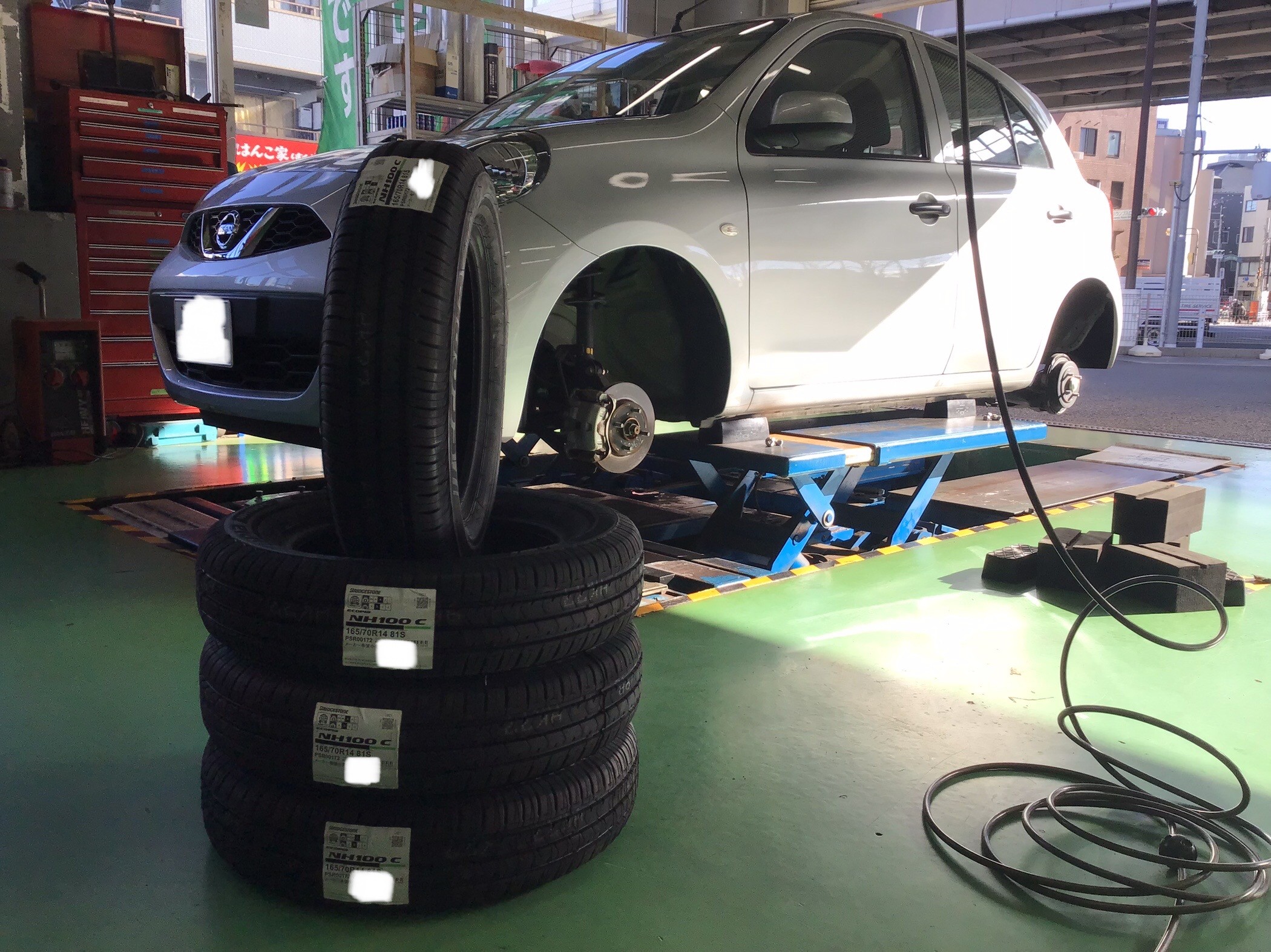 本日はニッサン マーチがタイヤ交換でご来店です。
