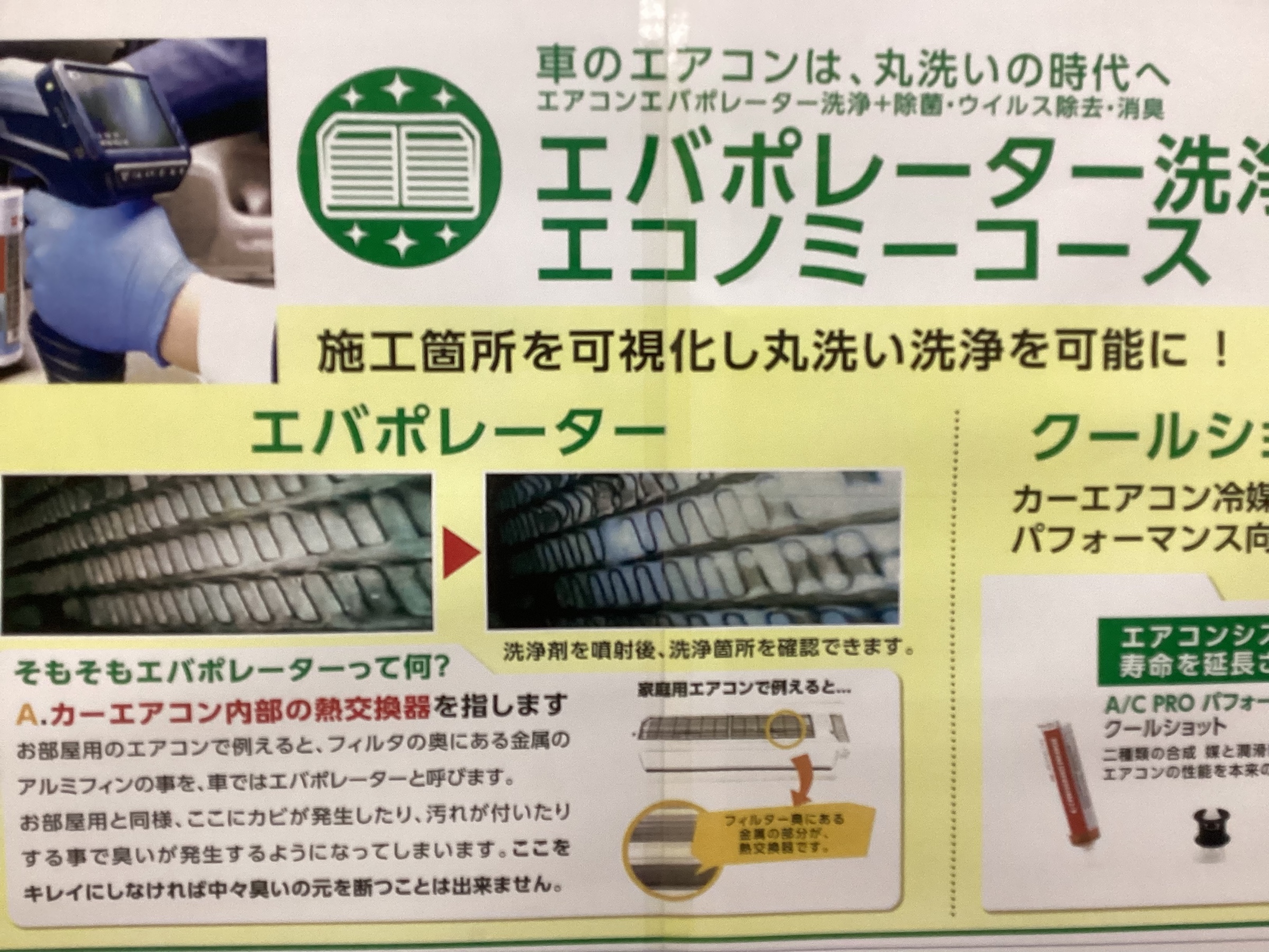 臭いも改善したり、パワーエアコンも同時に施工で