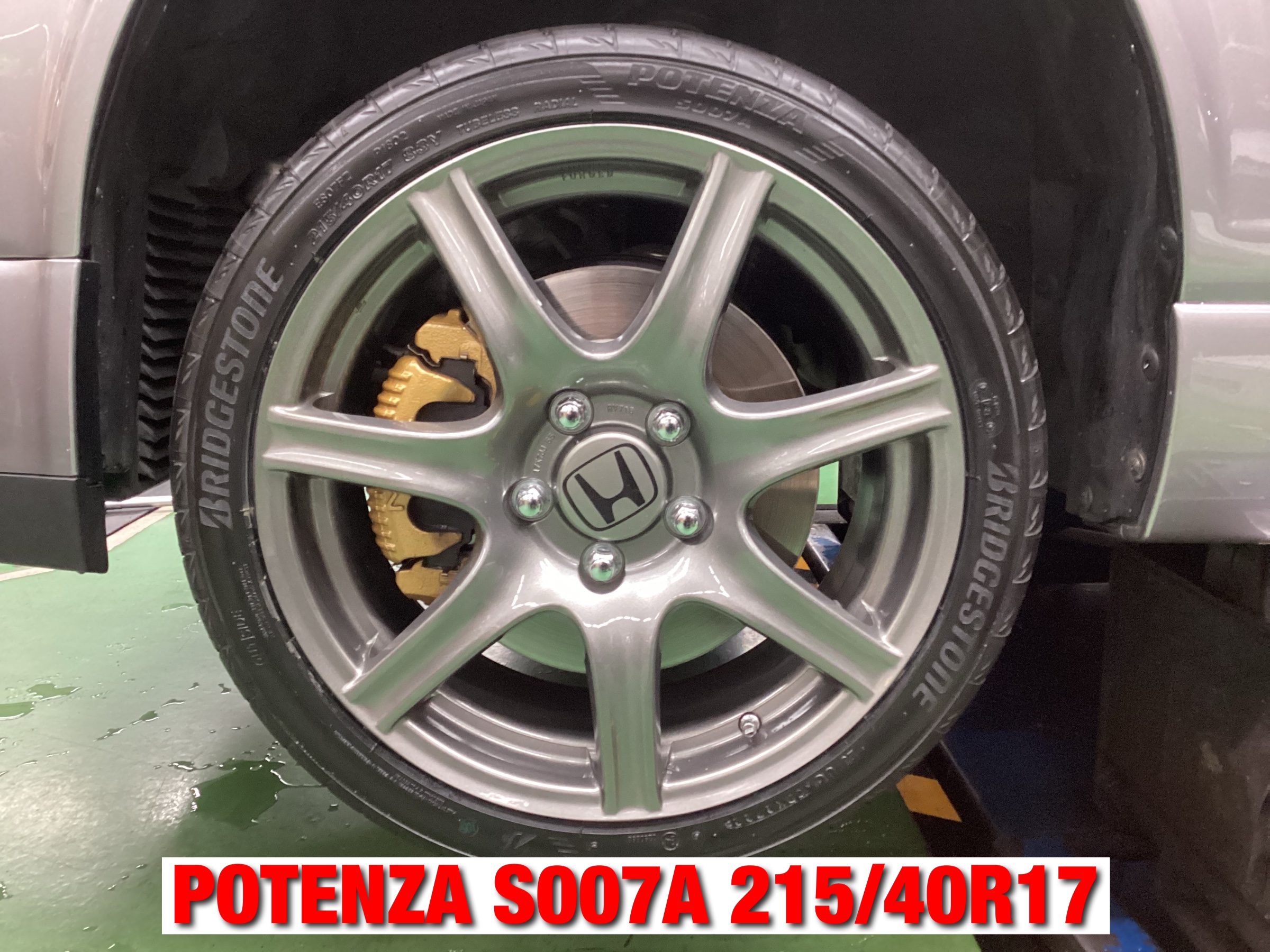 今回取り付けさせていただいたタイヤは、ポテンザS007A 215/40R17(フロント),255/40R17(リア)です。