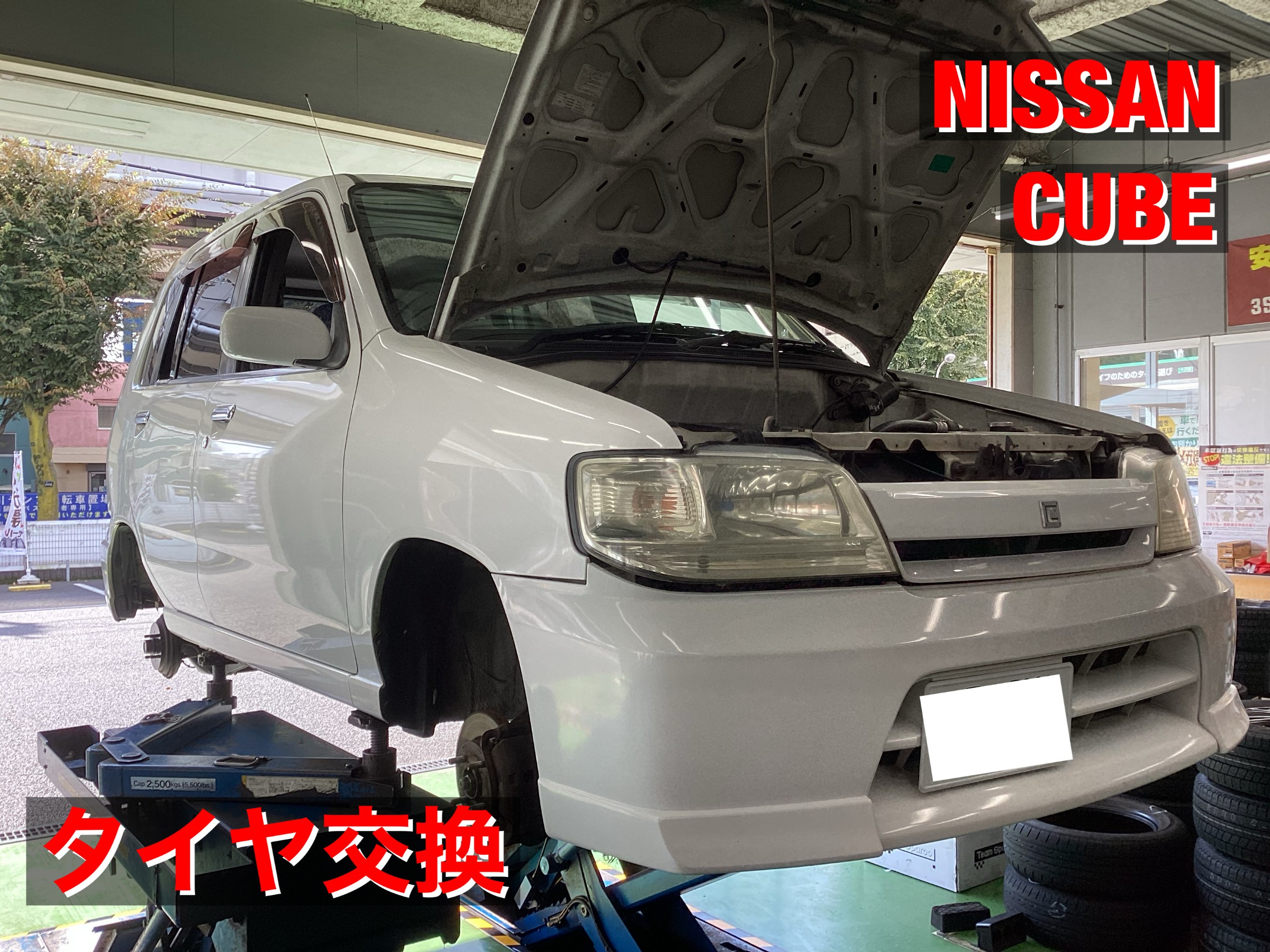 本日はニッサン キューブのタイヤ交換を行います!