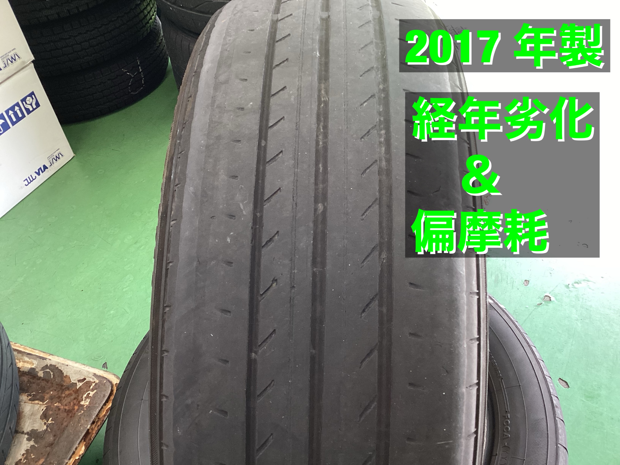 残り溝が少なく、偏摩耗も見られました。