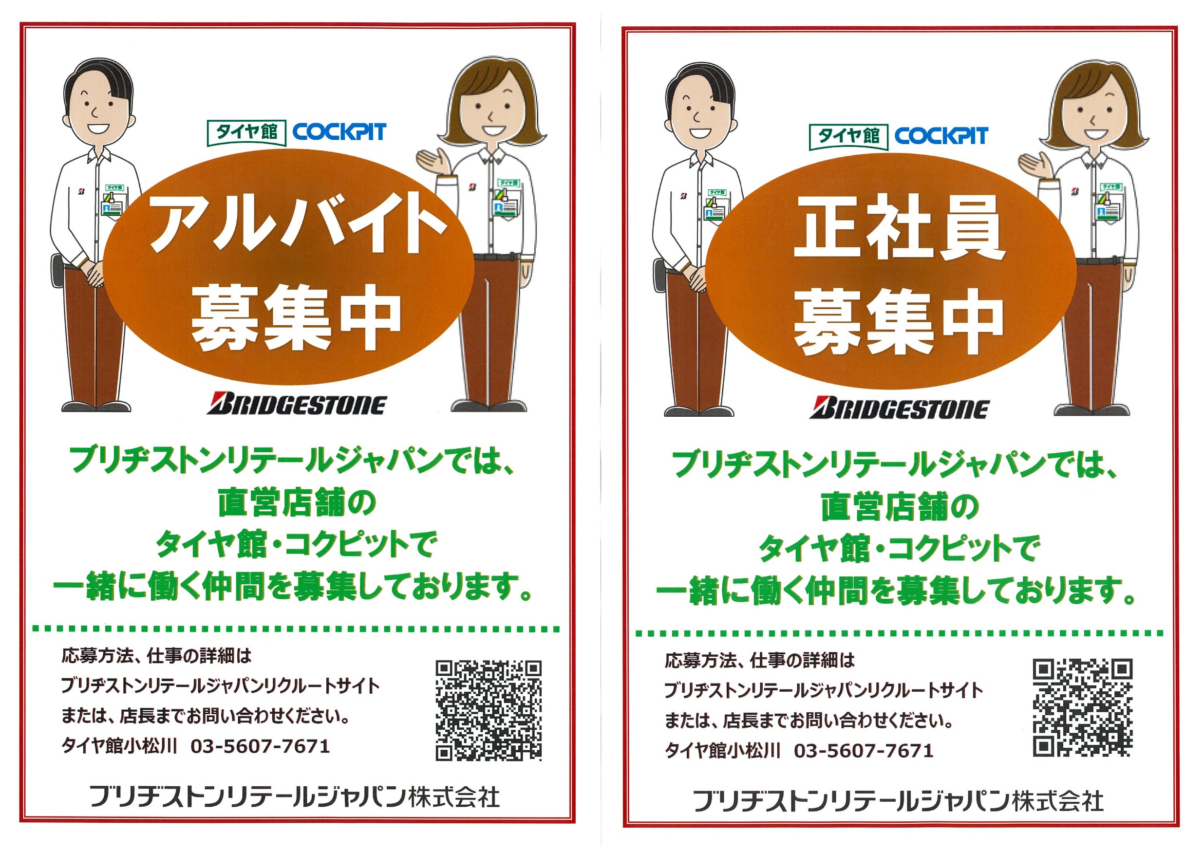 ブリヂストンのタイヤ専門店「タイヤ館」「コクピット」直営店の総合職正社員として、タイヤを初めとするカー用品販売、車の整備、その他店舗業務をお願いします。