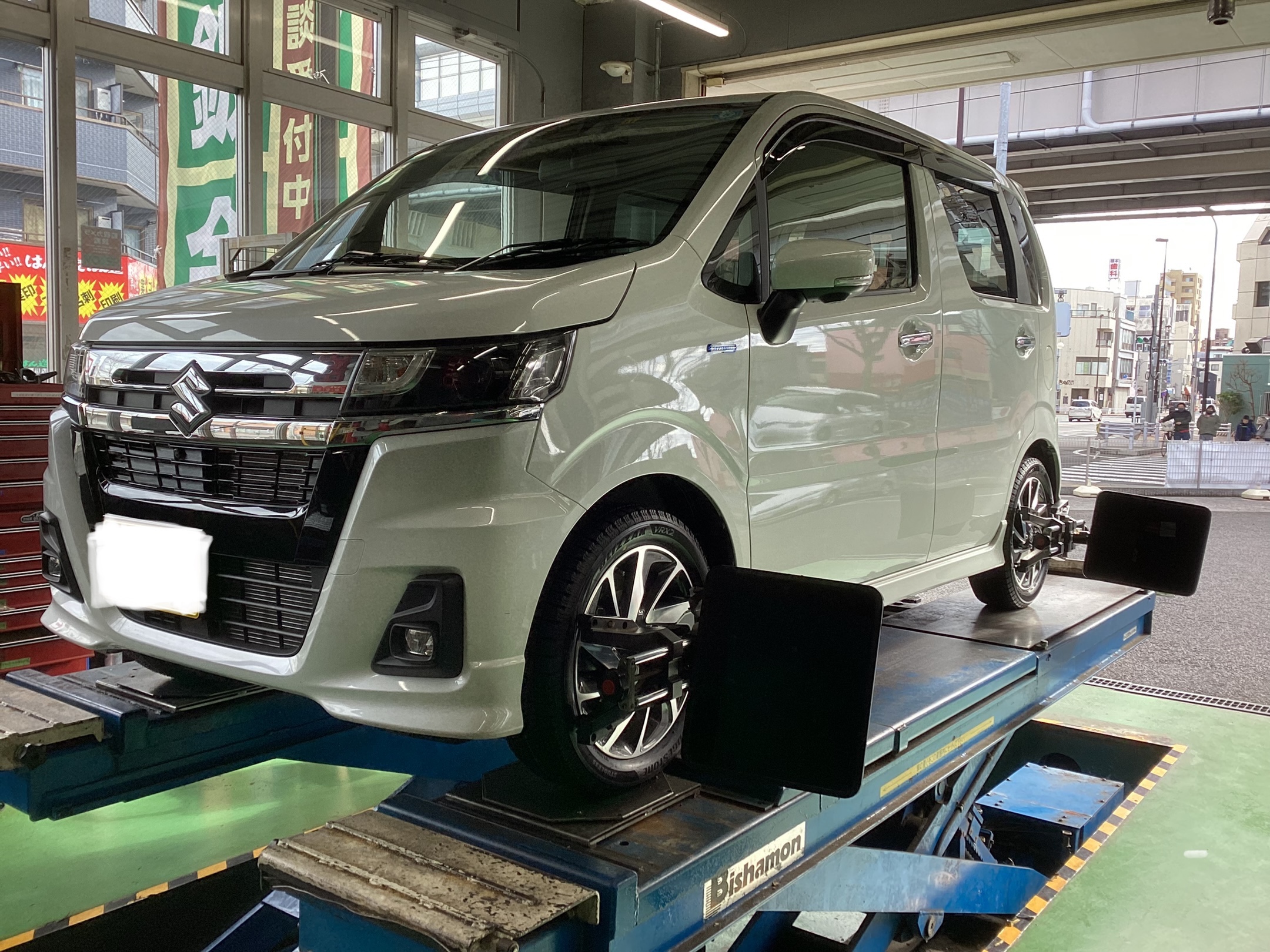 スズキ ワゴンRカスタムにスタッドレスタイヤ交換とアライメント調整