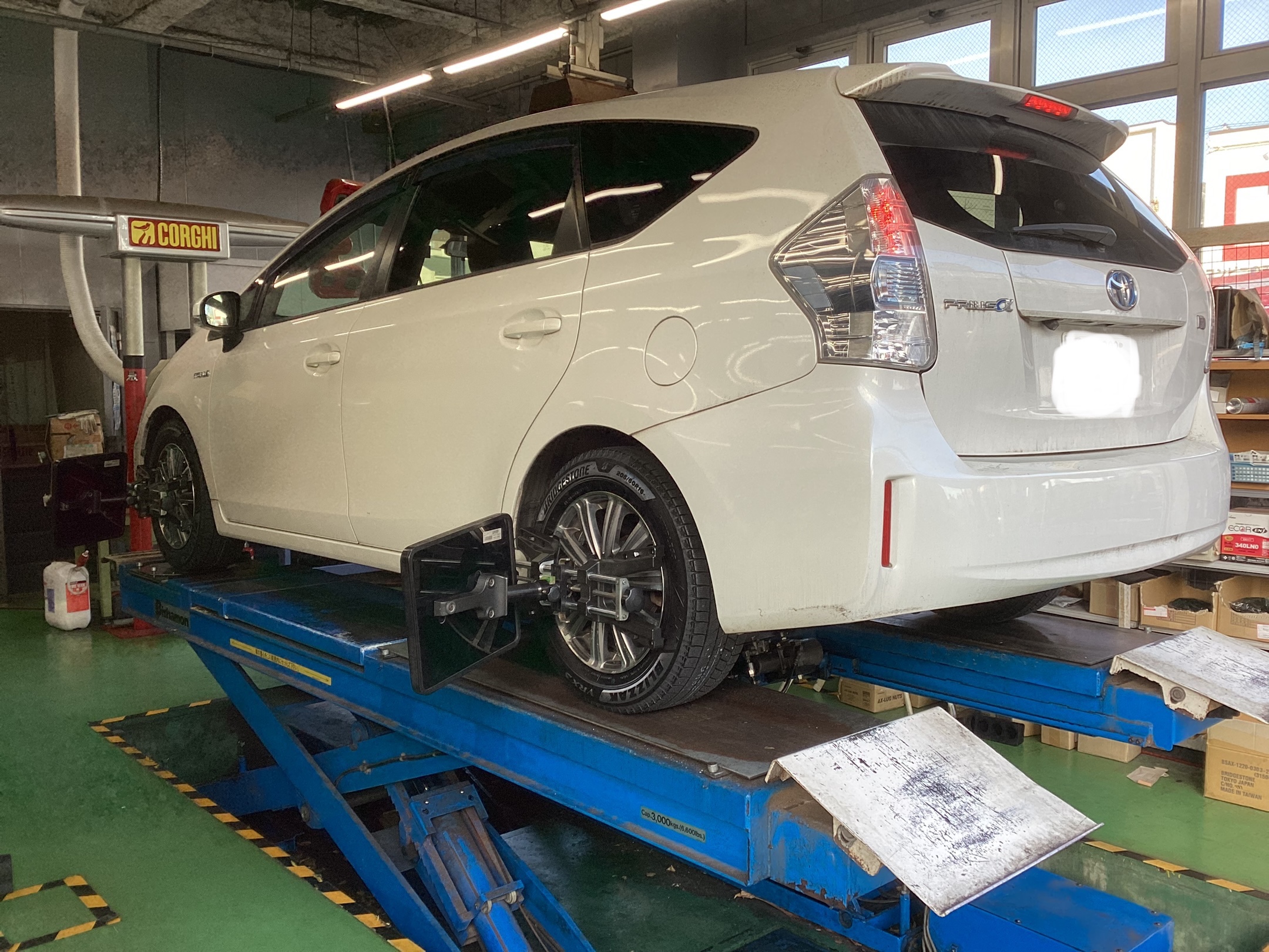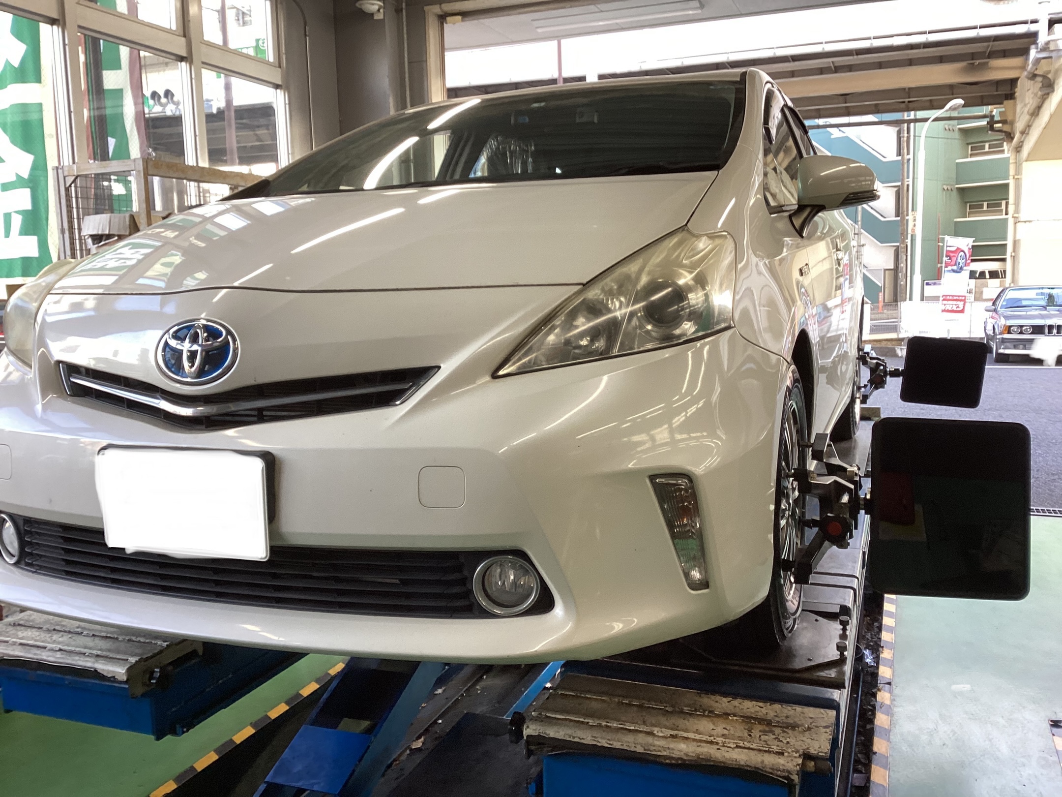 本日はプリウスαへ新品スタッドレスタイヤ装着&アライメント調整を実施致しました!!