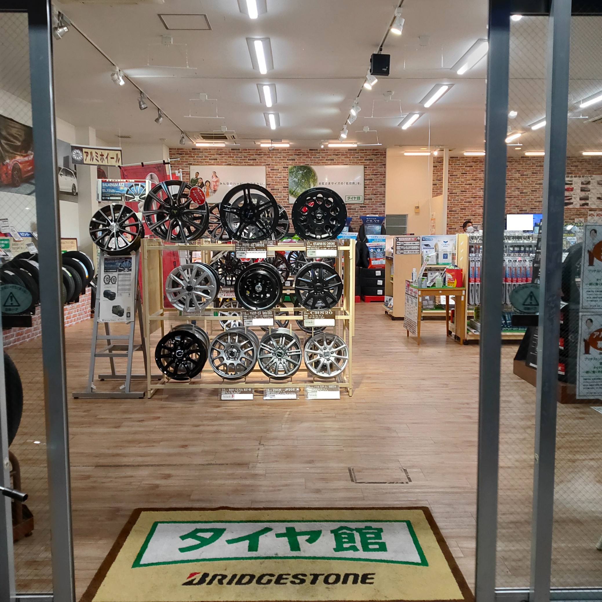 今回は店内入り口正面に設置していたタイヤ+ホイールのひな壇を撤去し、