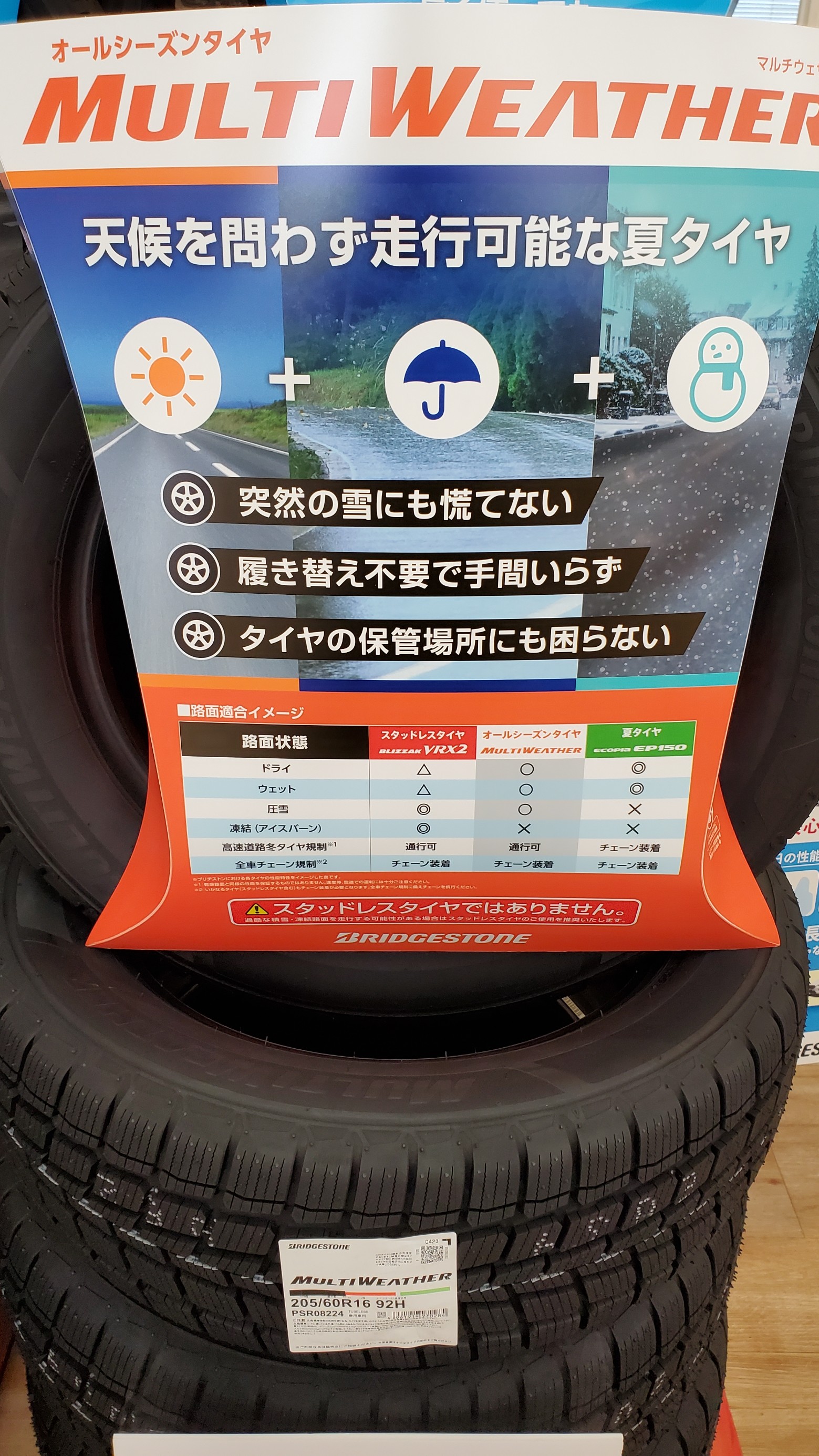 BRIDGESTONE製オールシーズンタイヤ店頭展示中です!