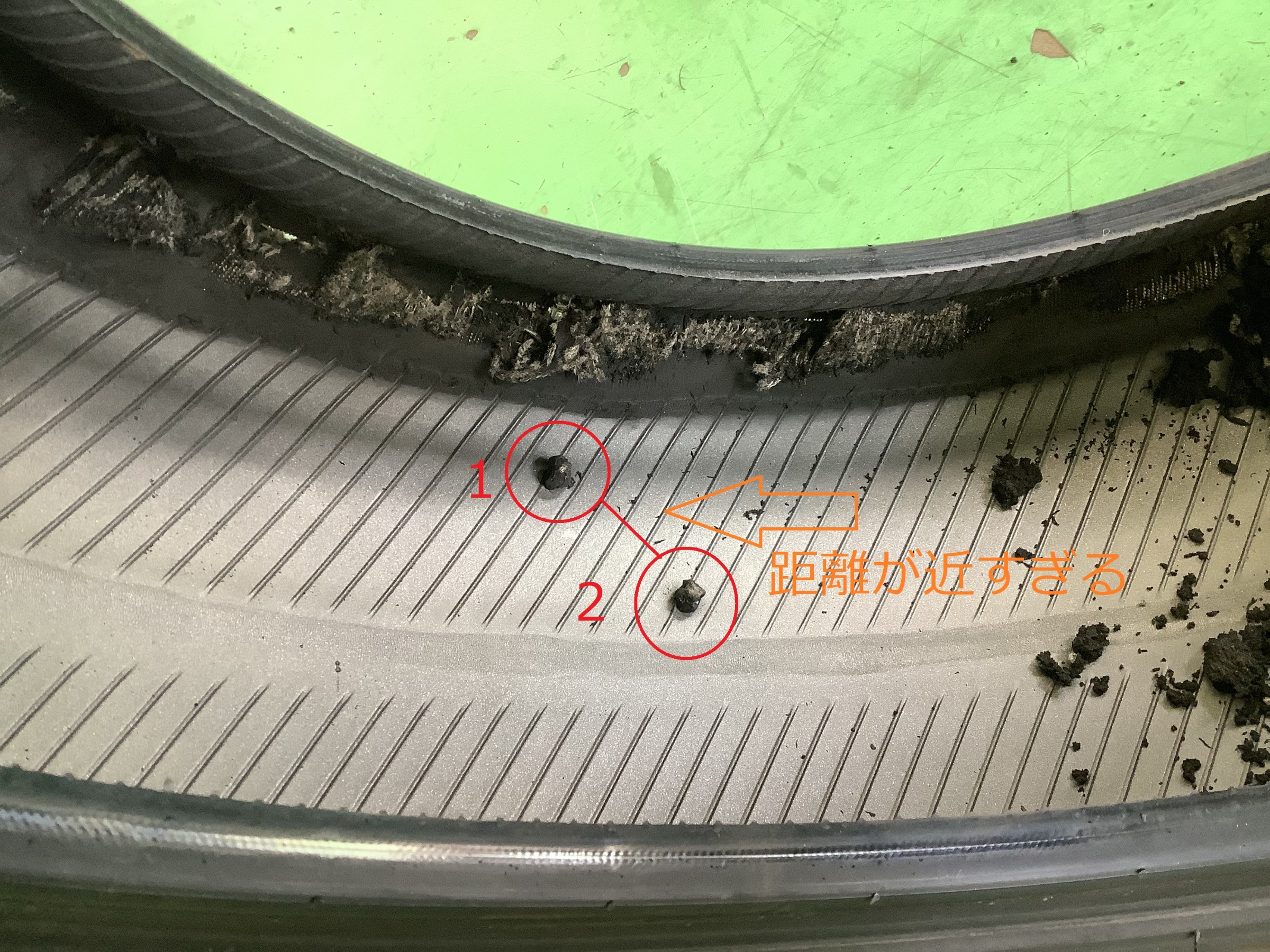 当店では、タイヤが接地する範囲+αの距離内のパンク修理はNGとさせて頂いております。