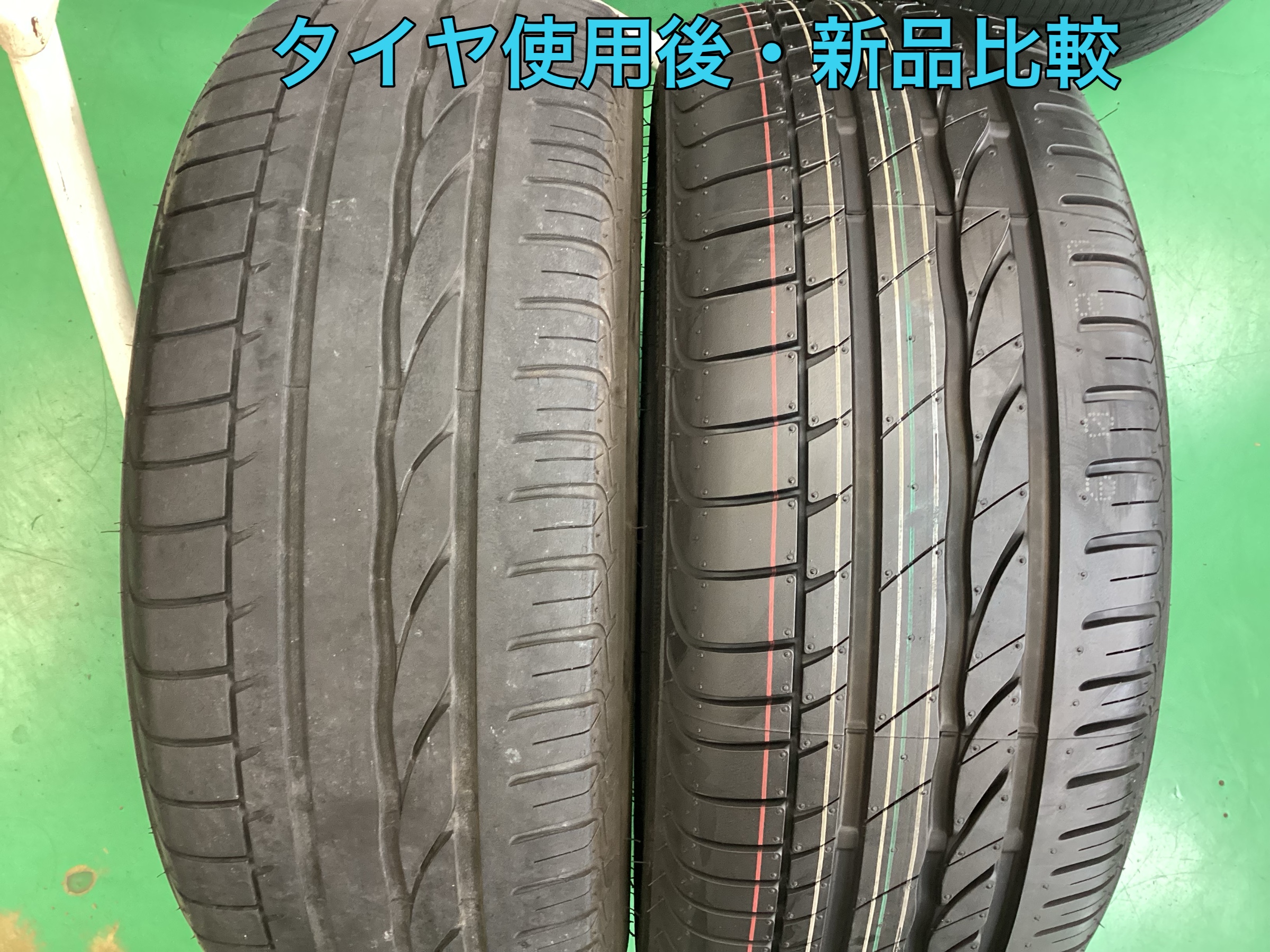 今回はタイヤの新品状態と使用済み状態についてです。