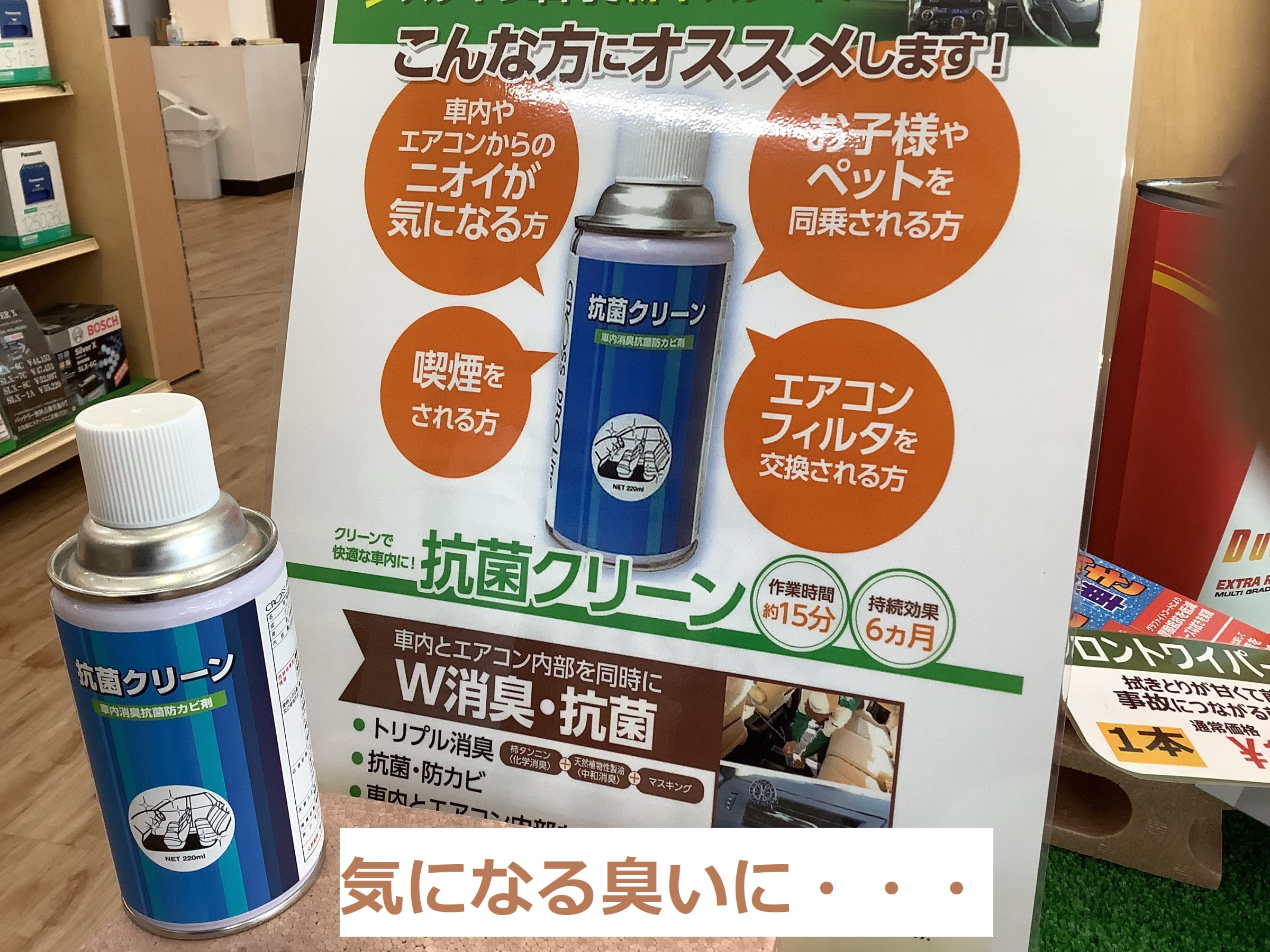 車内の臭いが気になった方は当店の抗菌クリーンはいかがでしょうか。