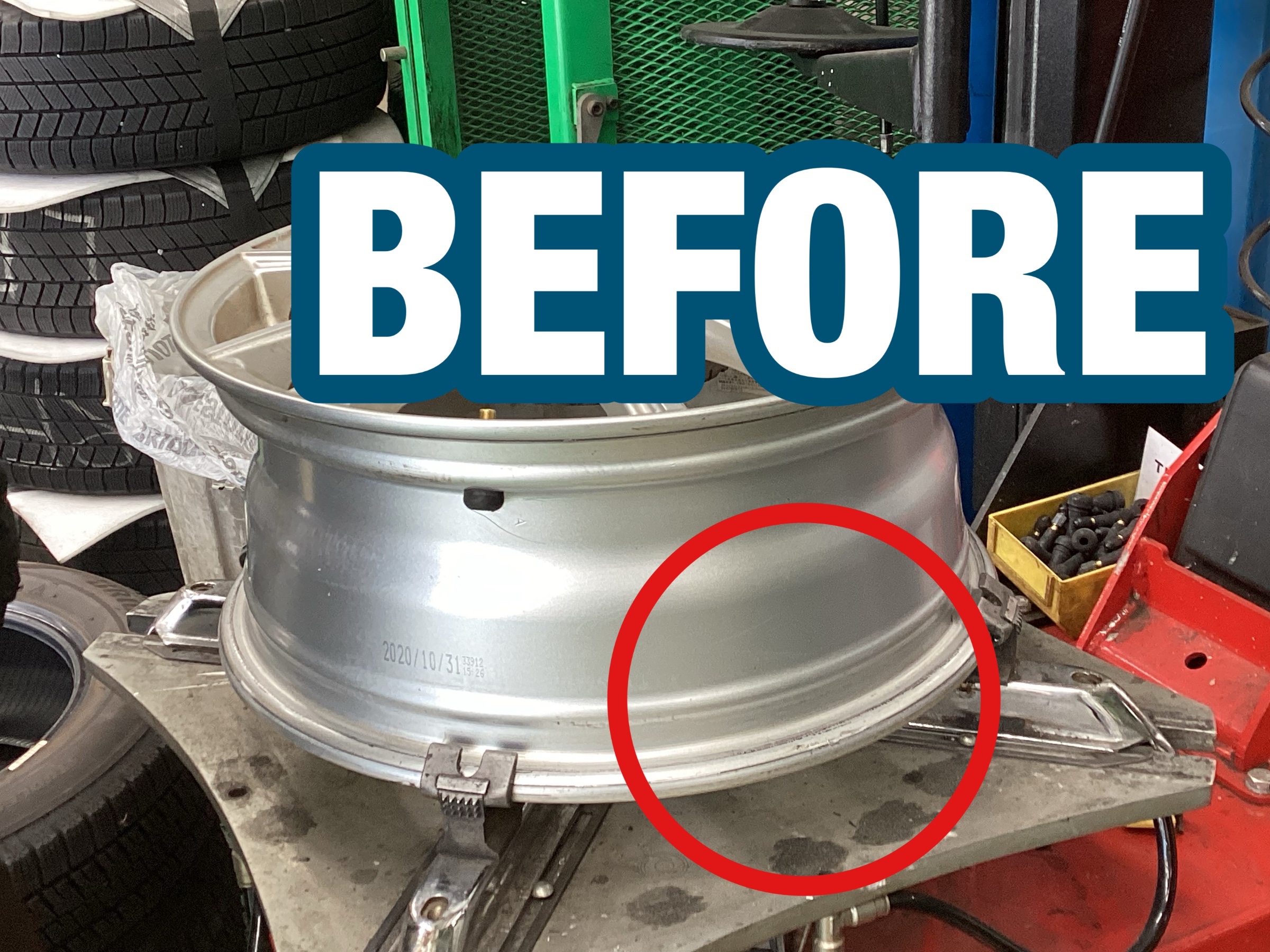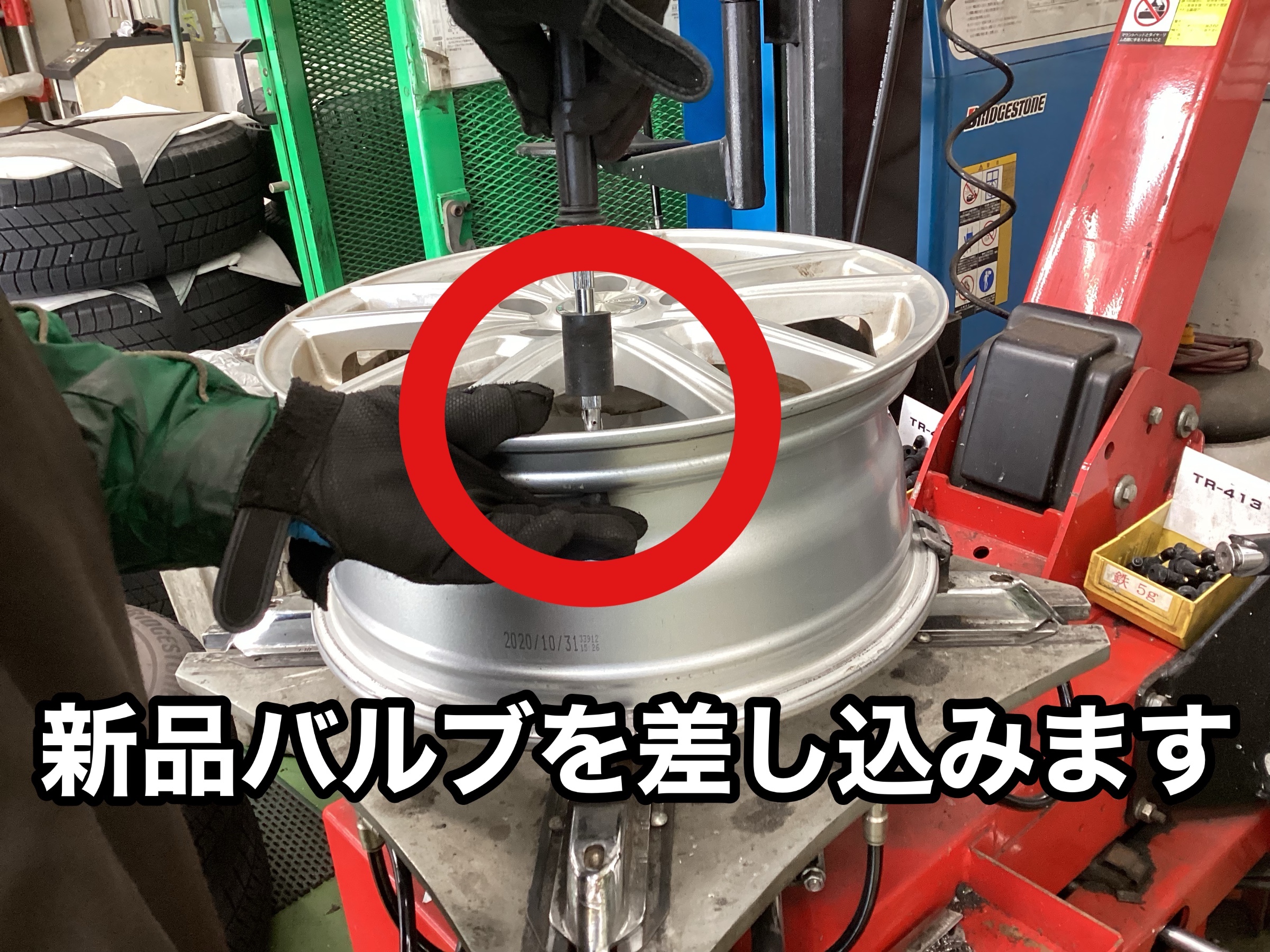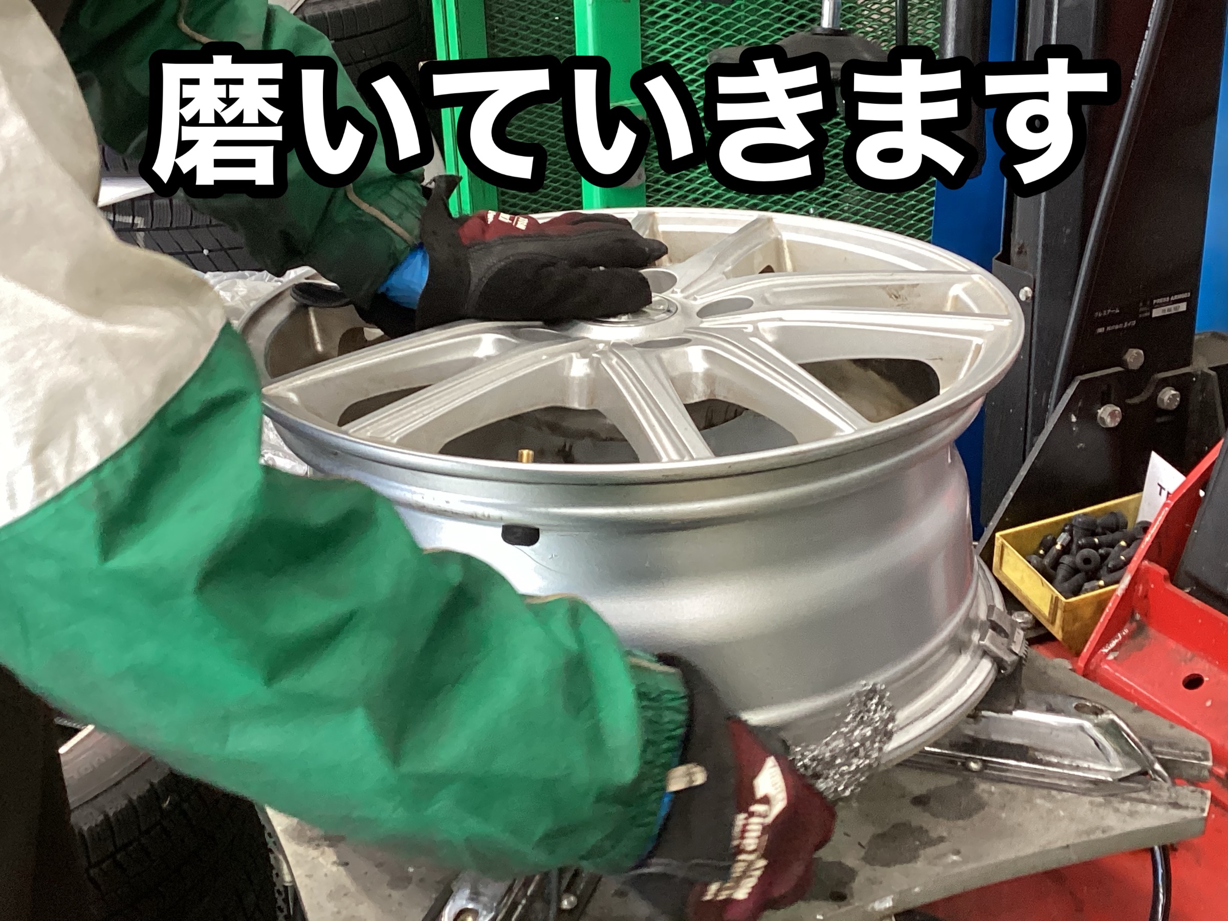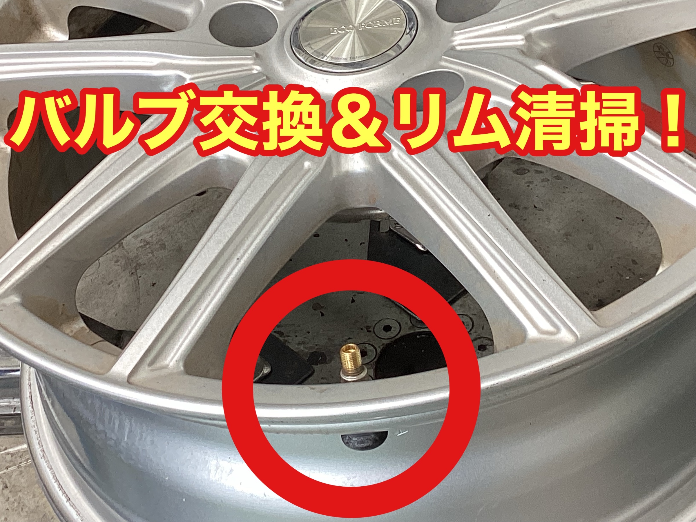 タイヤ交換作業の中でも地味な作業ですが、エアー漏れを防ぐ大事な作業なんです。