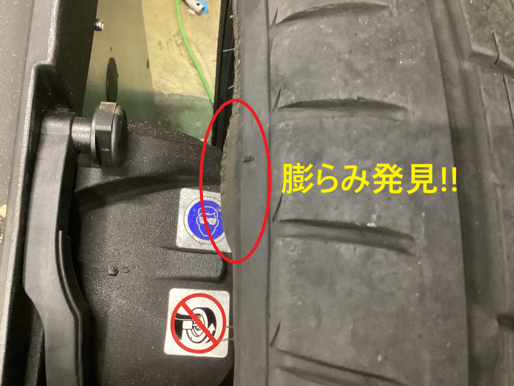【①箇所目】 サイドウォール部分に膨らみを発見!! セパレーションを起こしています!!