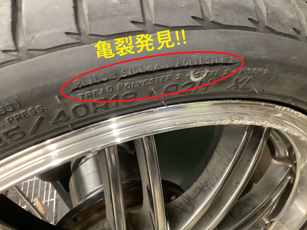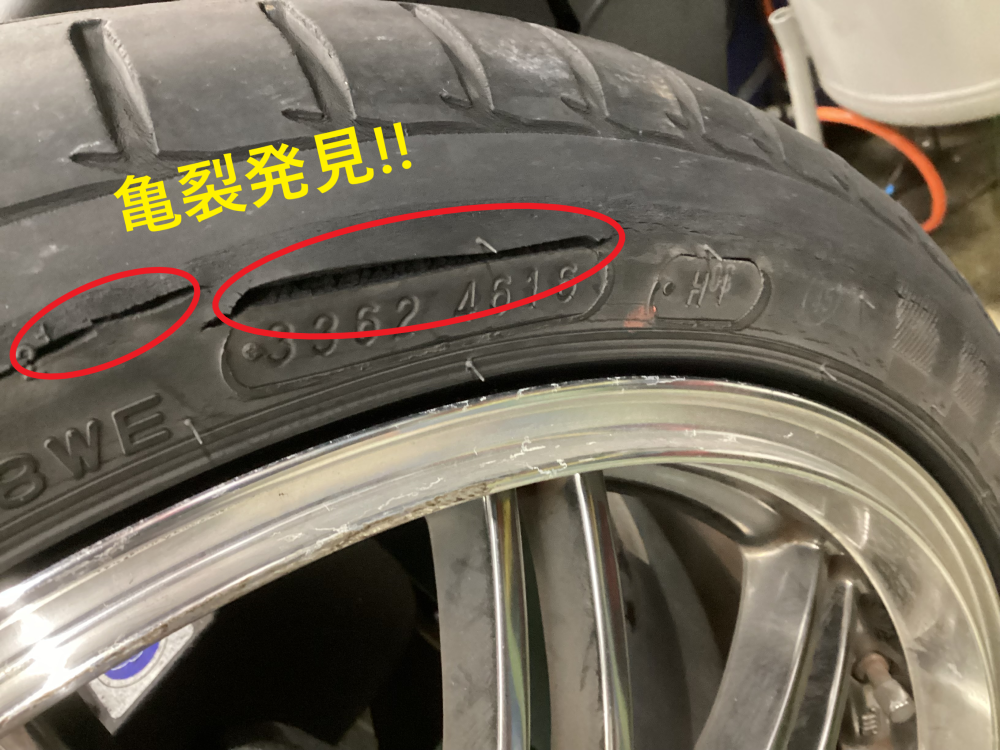 【②箇所目】 反対側のサイドウォール部分に2箇所の亀裂を発見!!