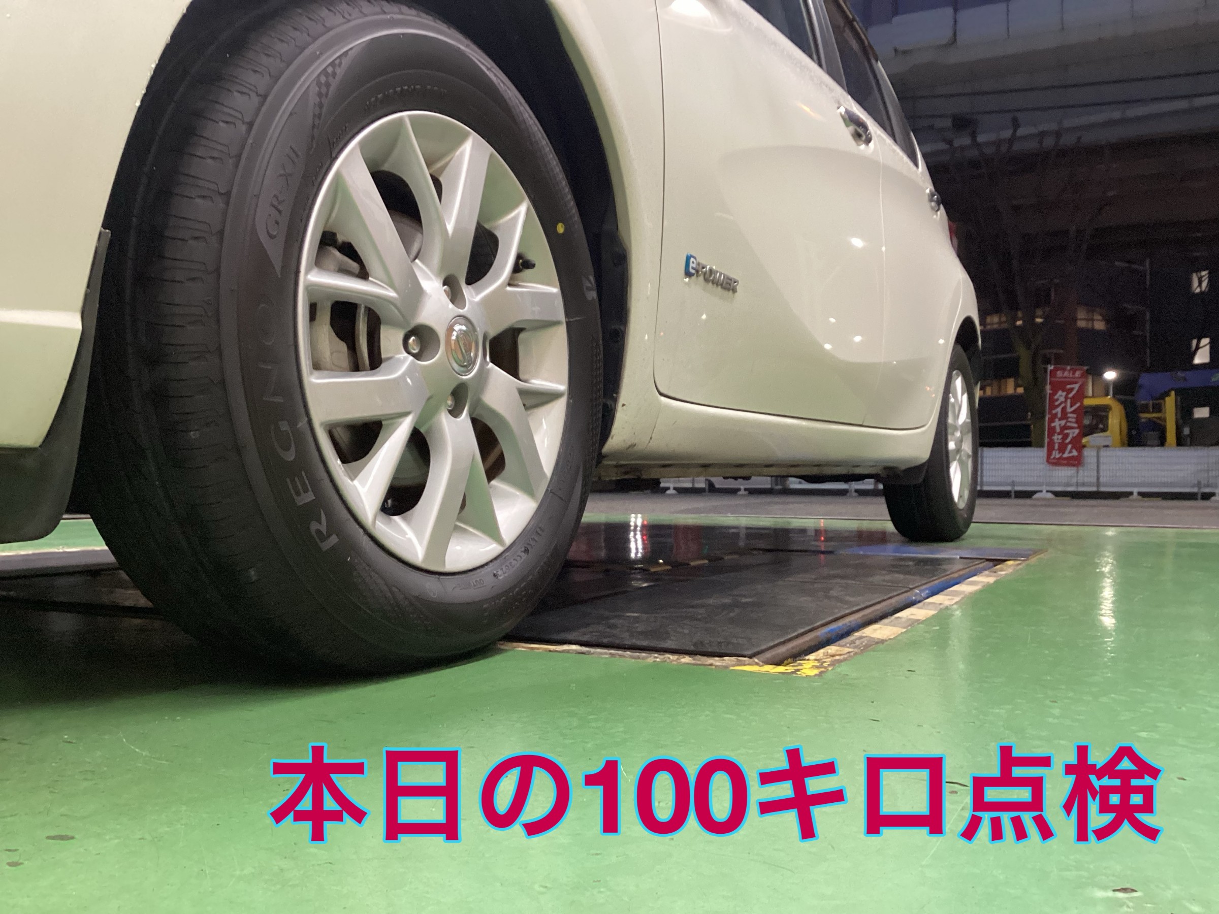 タイヤを購入されたお客様としては、「新しいタイヤに交換したからもう安心。」と思われる方も多いのですが、当店の場合、100km点検を行うまでが、新しいタイヤの交換作業と考えています。