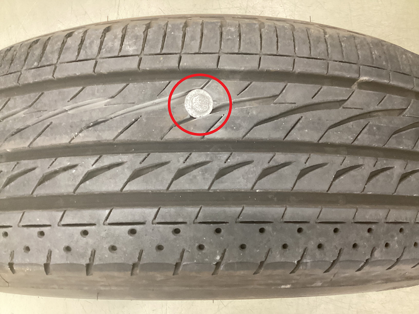 タイヤには、大きな異物が刺さっていました・・・((+_+))