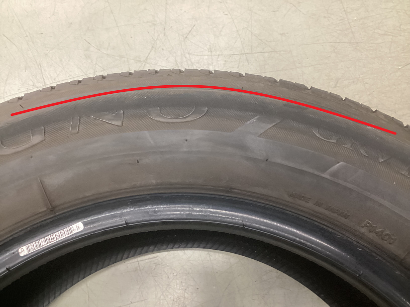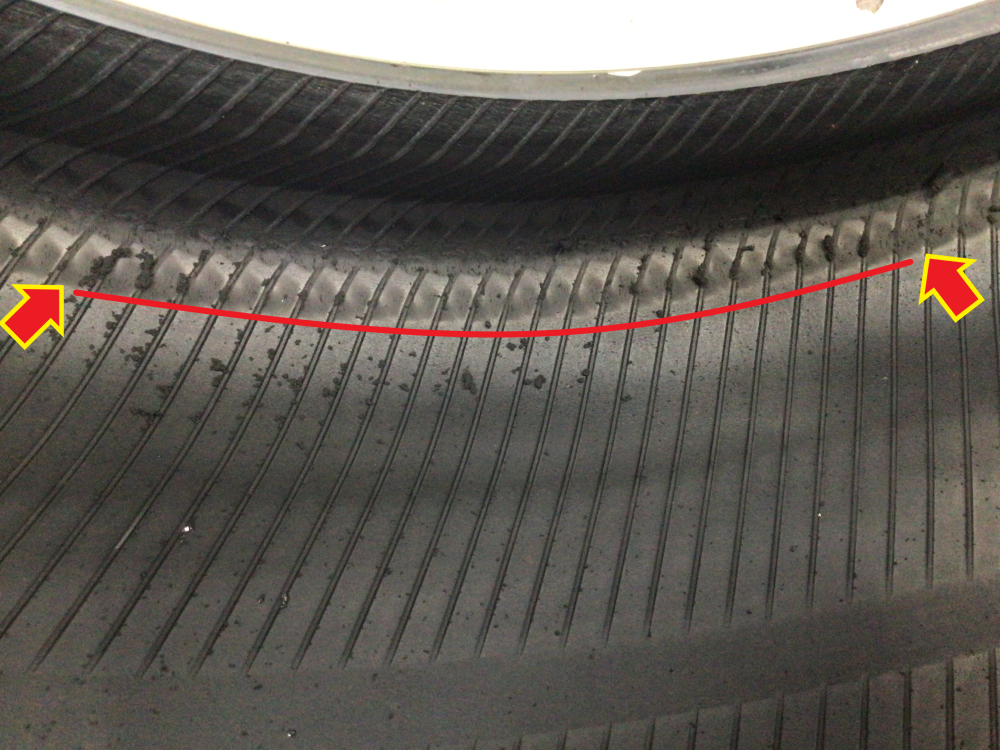タイヤの裏側もこのような傷が付いています・・・(◞‸◟) 低内圧引きずり痕が発生!!