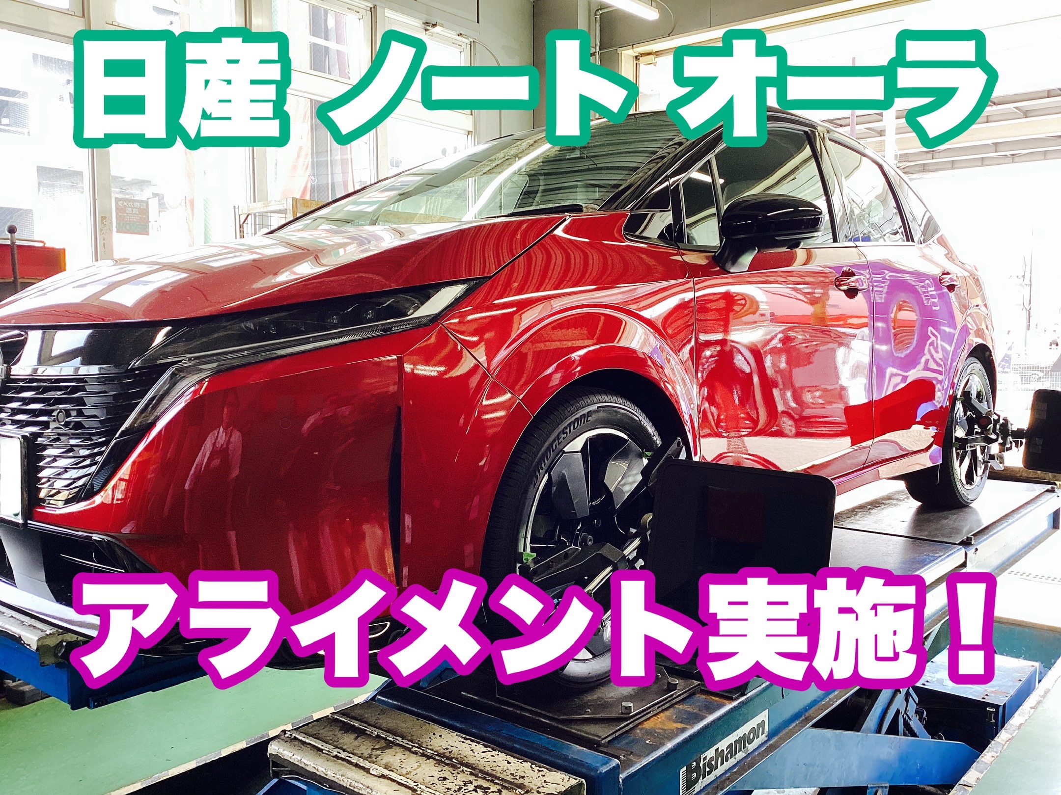 本日は日産ノートオーラの夏タイヤへの履き替えとアライメント調整をさせていただきました!