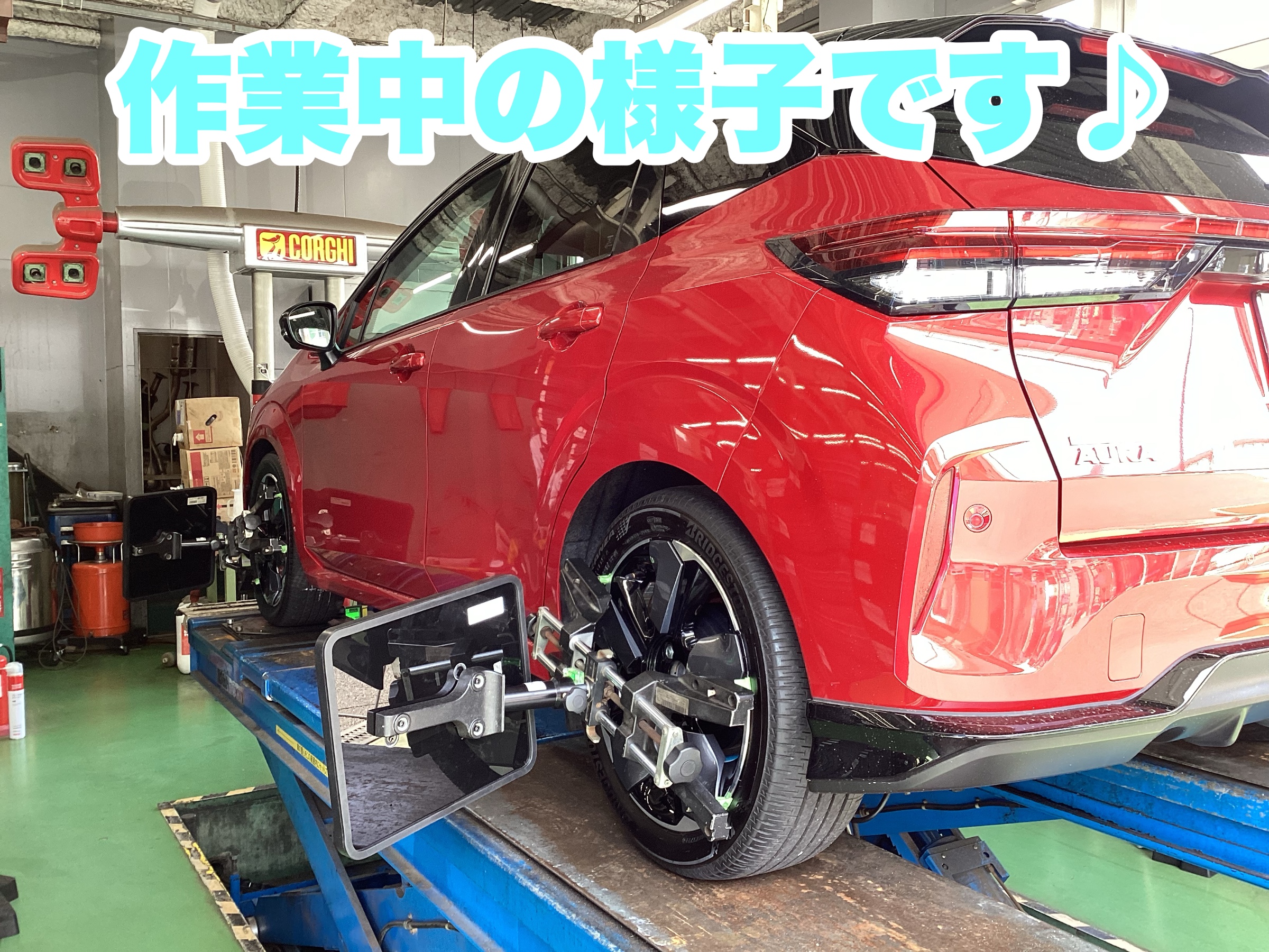 ハンドルセンターが少しズレているとのことで、トー角を調整させていただきました!