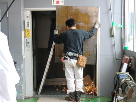 タイヤ等の移動は、人間が階段を昇り降りすることになります。
