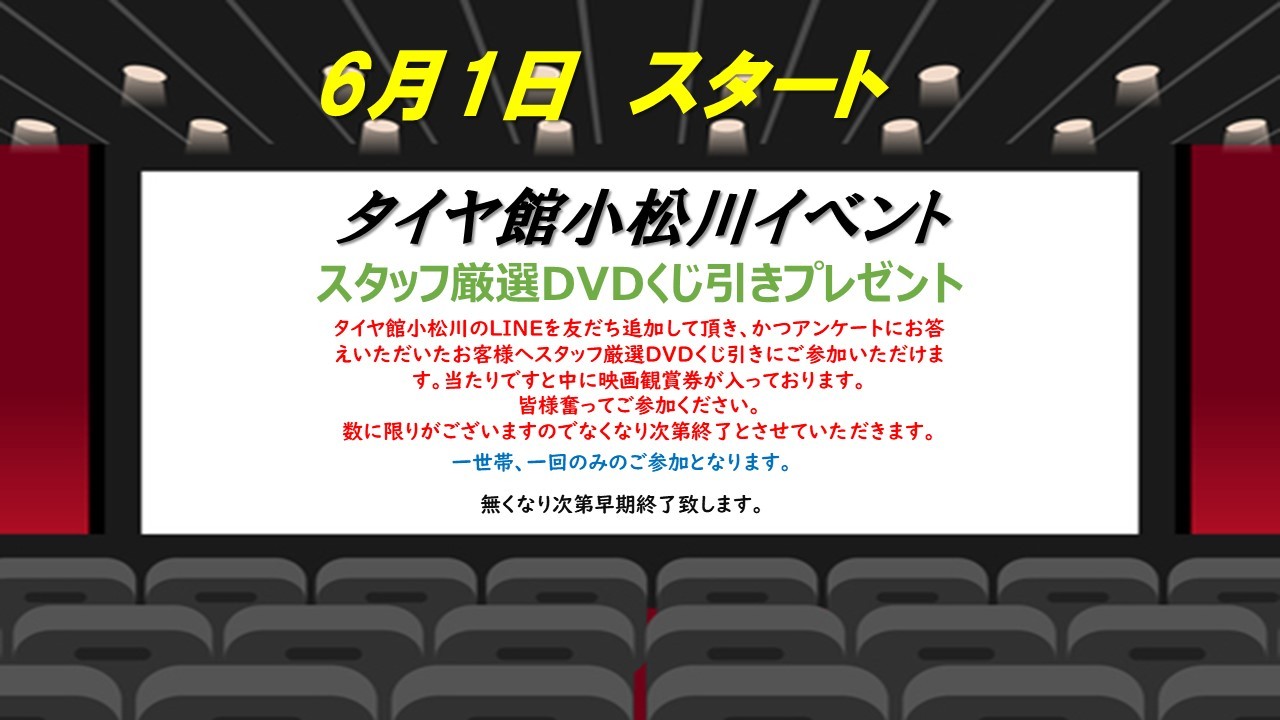 アンケートにお答えいただきましたお客様に、タイヤ館小松川店スタッフ厳選DVDが当たる