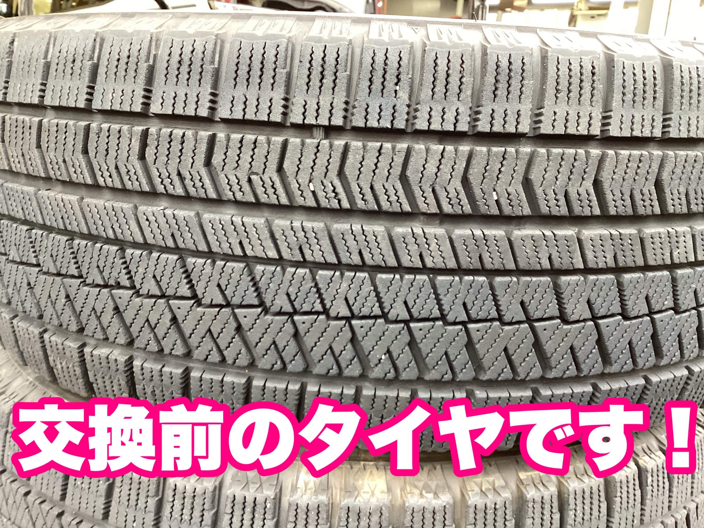 ↑の写真は交換前の冬タイヤで、溝もありヒビ割れも少ないのですが製造年が古かったため、