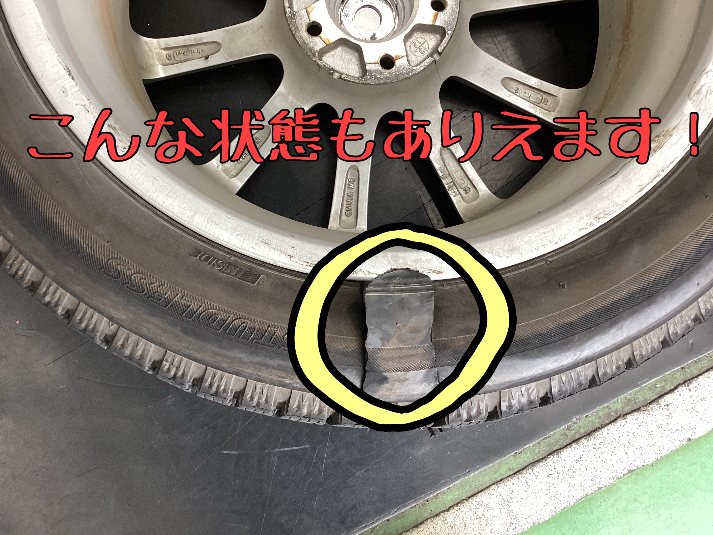 ただのパンクに見えても、タイヤの裏側を見たら…