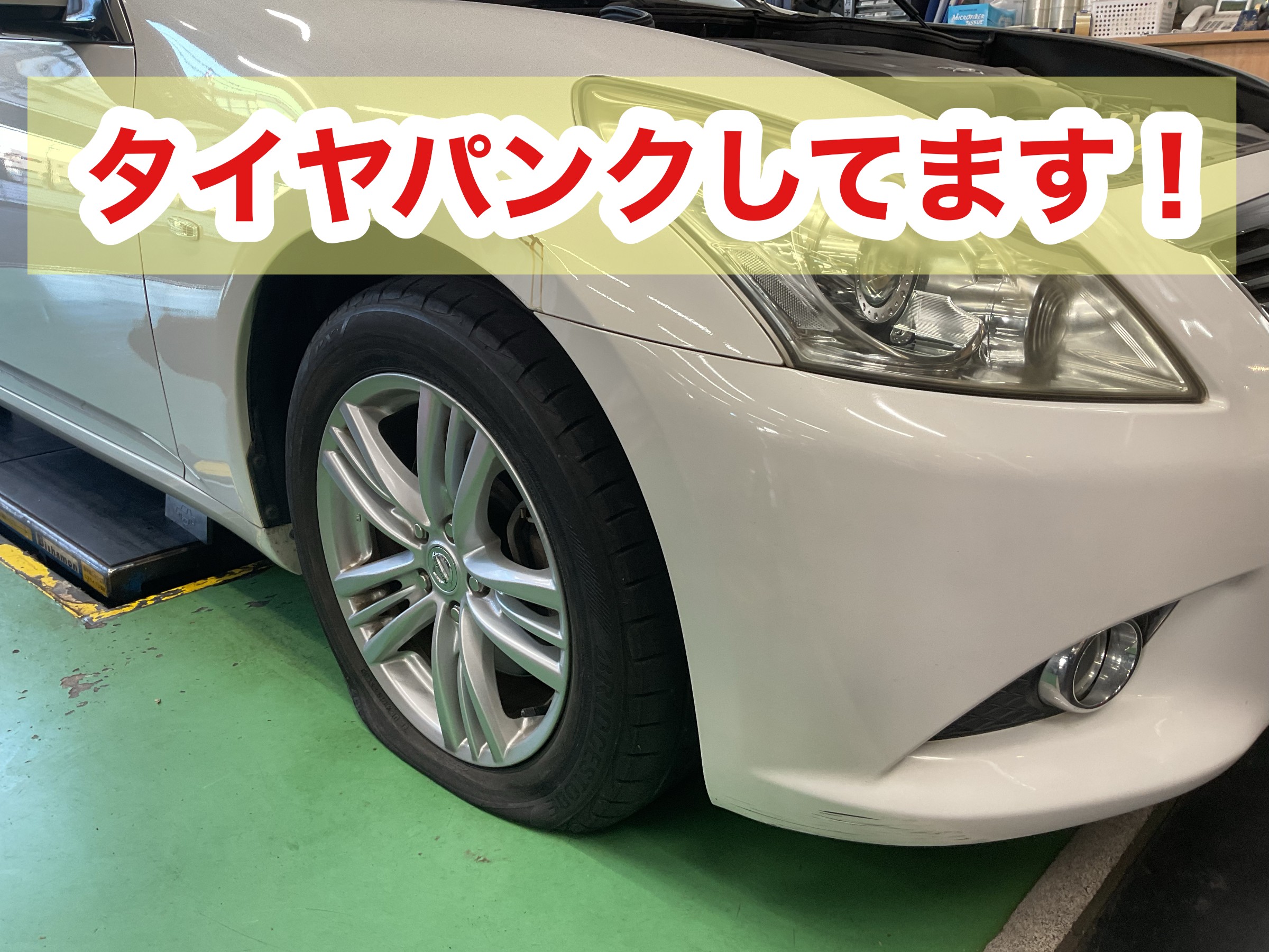 ニッサン スカイライン タイヤパンクによりタイヤ交換実施