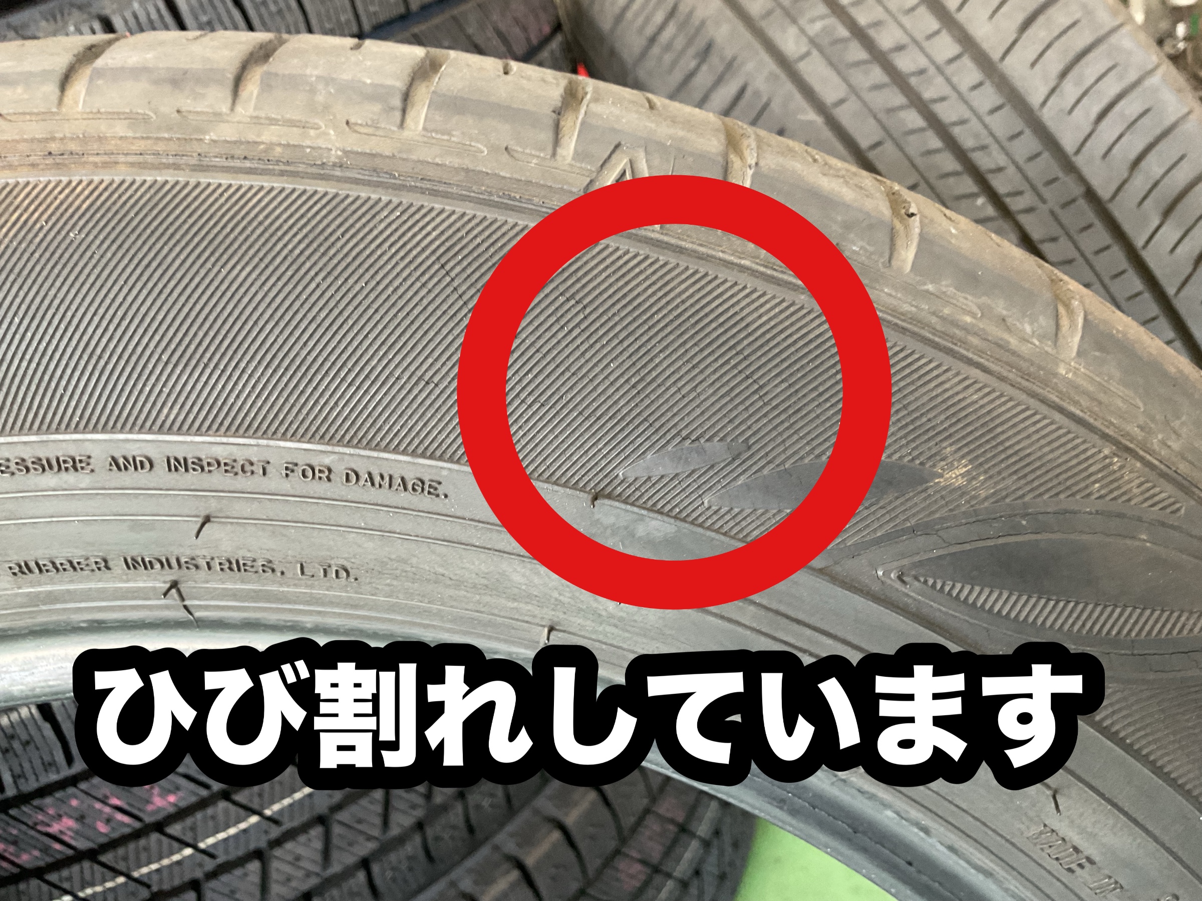 タイヤはゴム製品ですので必ずと言っていいほどひび割れてしまいます。