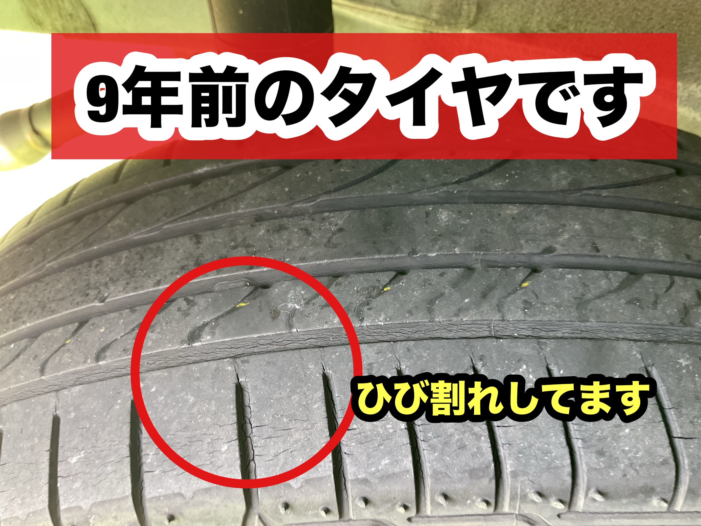 9年前の新車装着タイヤのPOTENZA RE050が着いていましたが