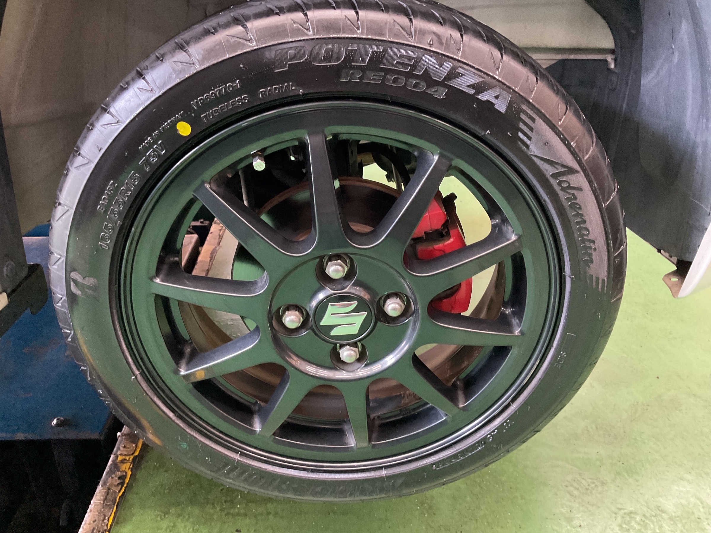タイヤは、ポテンザ アドレナリン 165/55R15 を取り付けさせていただきました。
