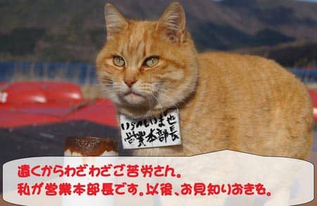 芦ノ湖のロープウェイの近くに、猫の営業本部長さん達がいらっしゃるので