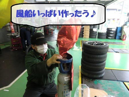 画像は、当店の風船おじさんが一生懸命風船を作っている様子です。