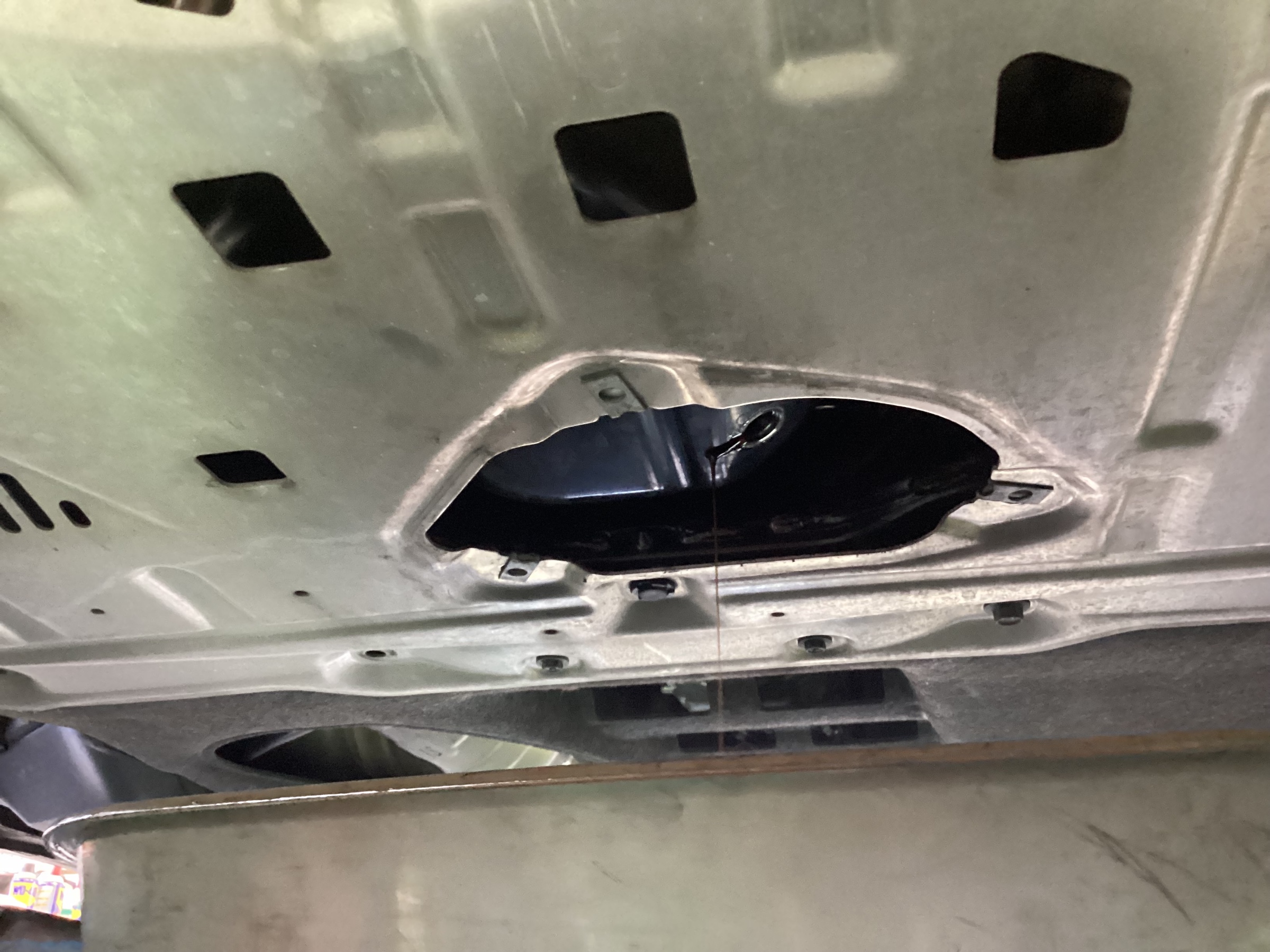 下抜きの場合は車両の下に潜り込み、 オイルパン に付いているドレンボルトを外す所から始まります