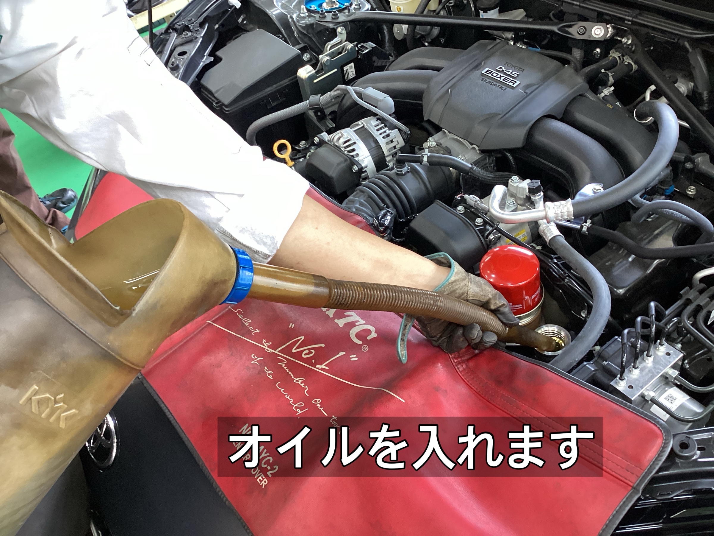 交換するオイルを選びましたら、オイルフィラーキャップを開けてオイルを注入します!